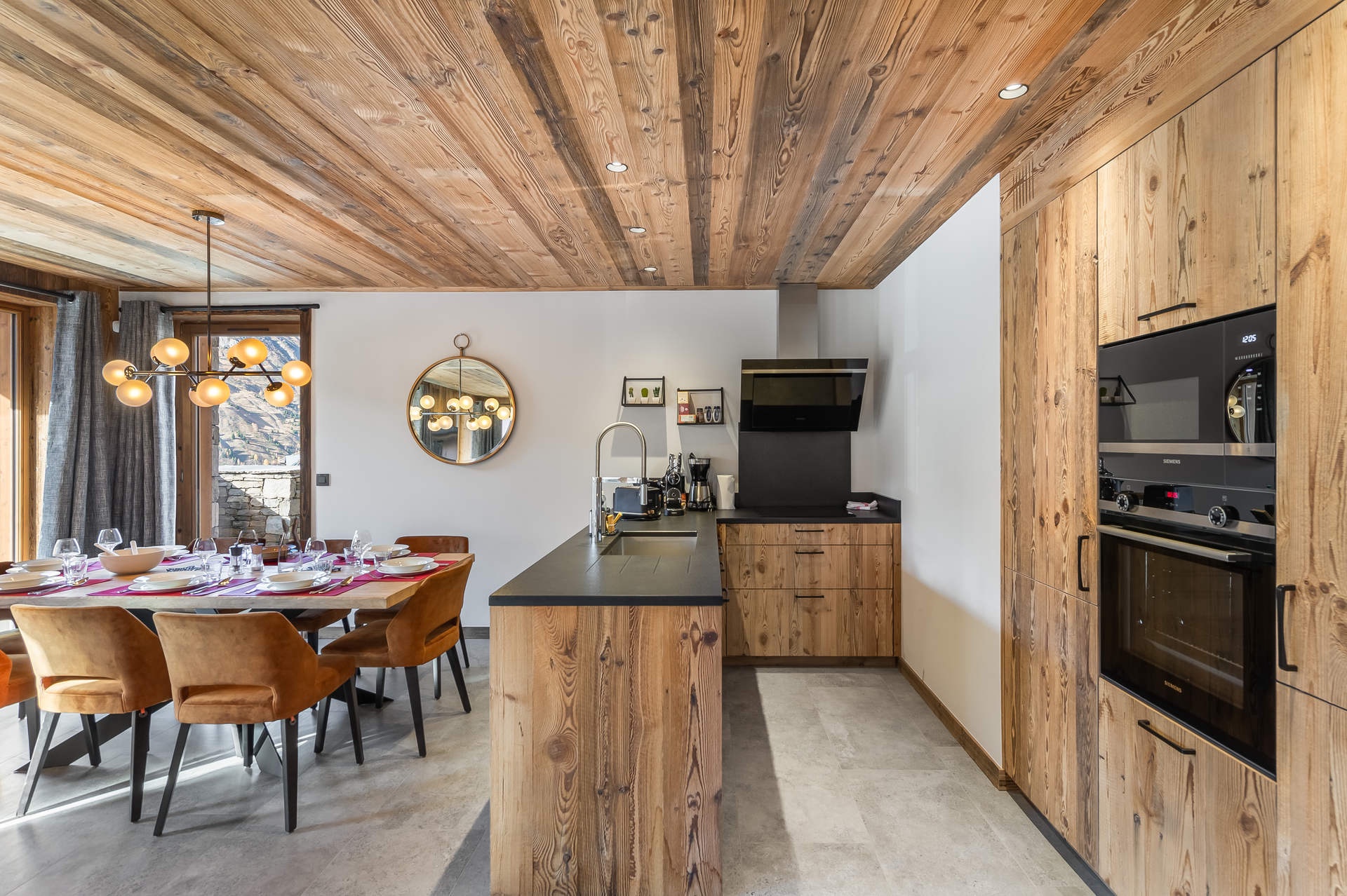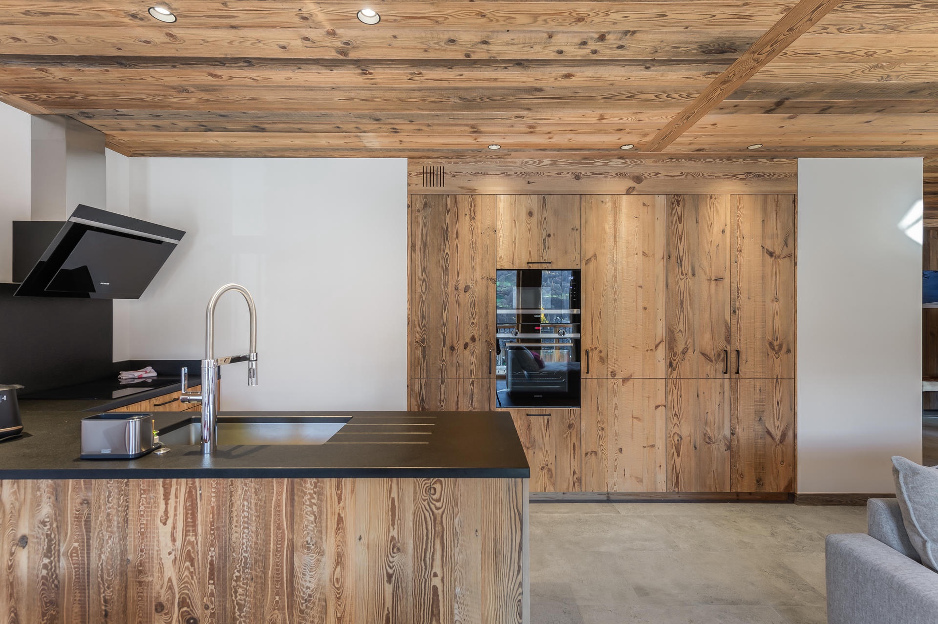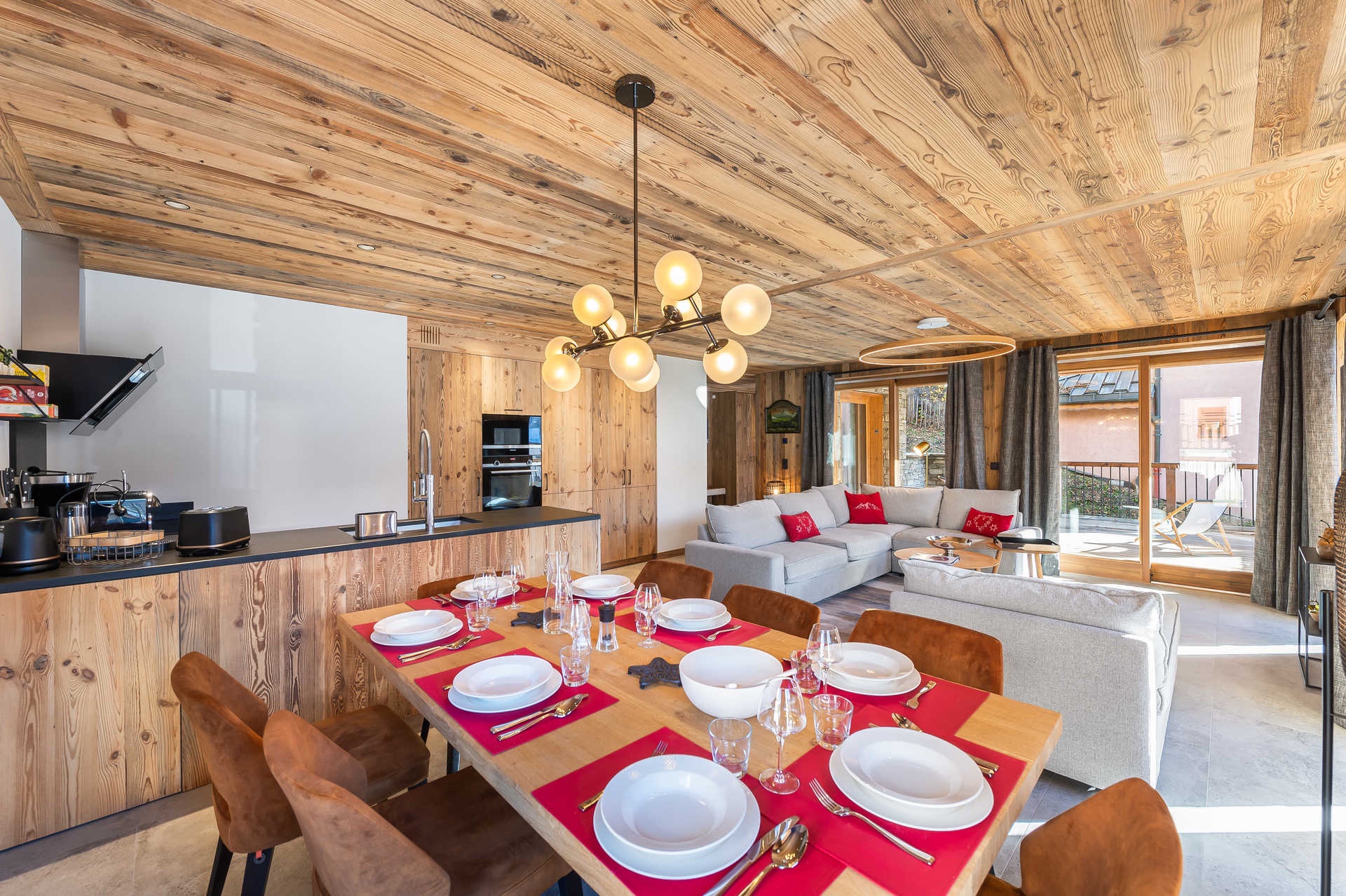 Open kitchen: 4 induction hob, microwave, oven, hood, fridge, dishwasher, capsule coffee maker, coffee maker, kettle, citrus press, toaster, mincing machine