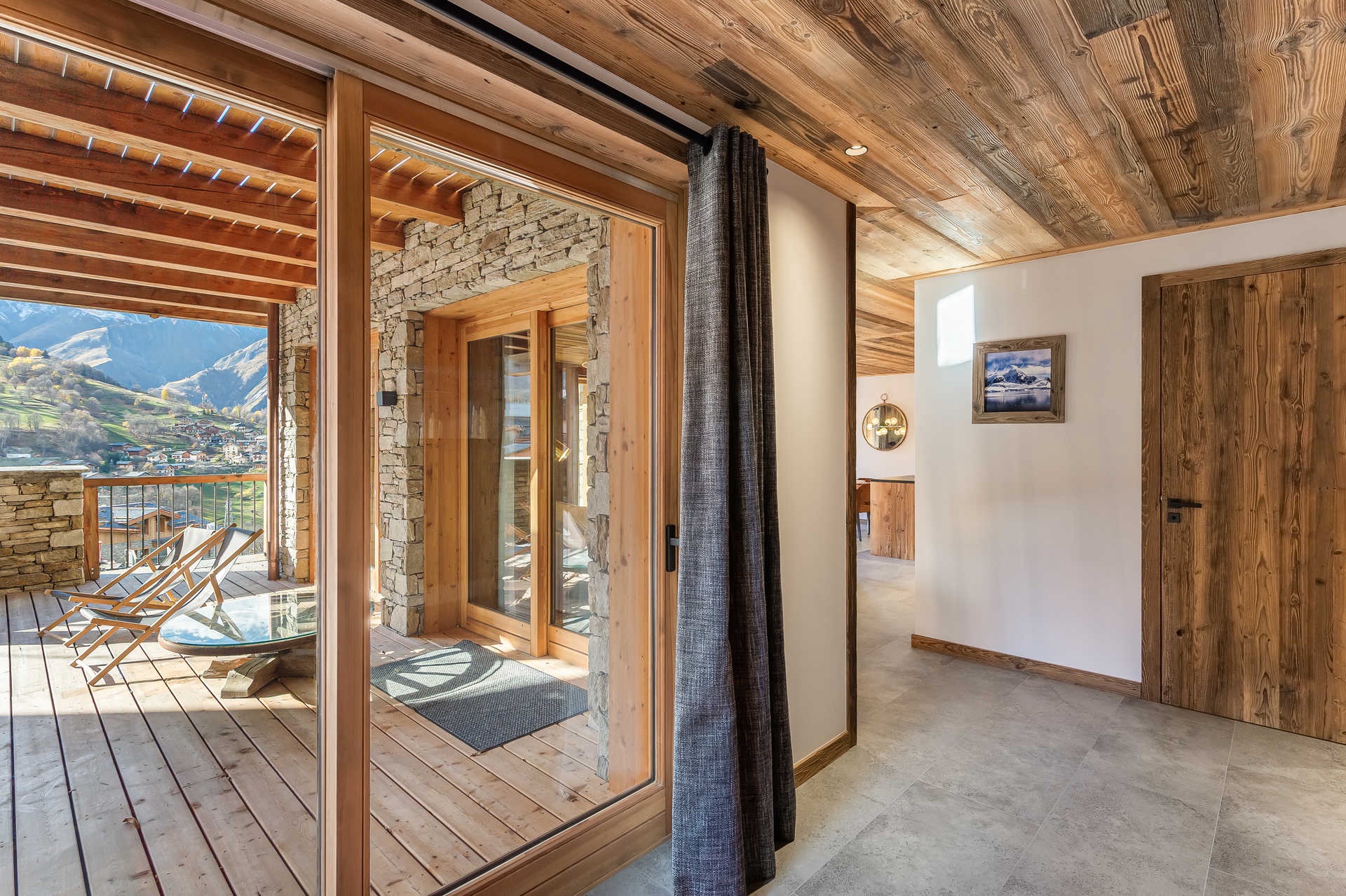 A balcony terrace with a sauna