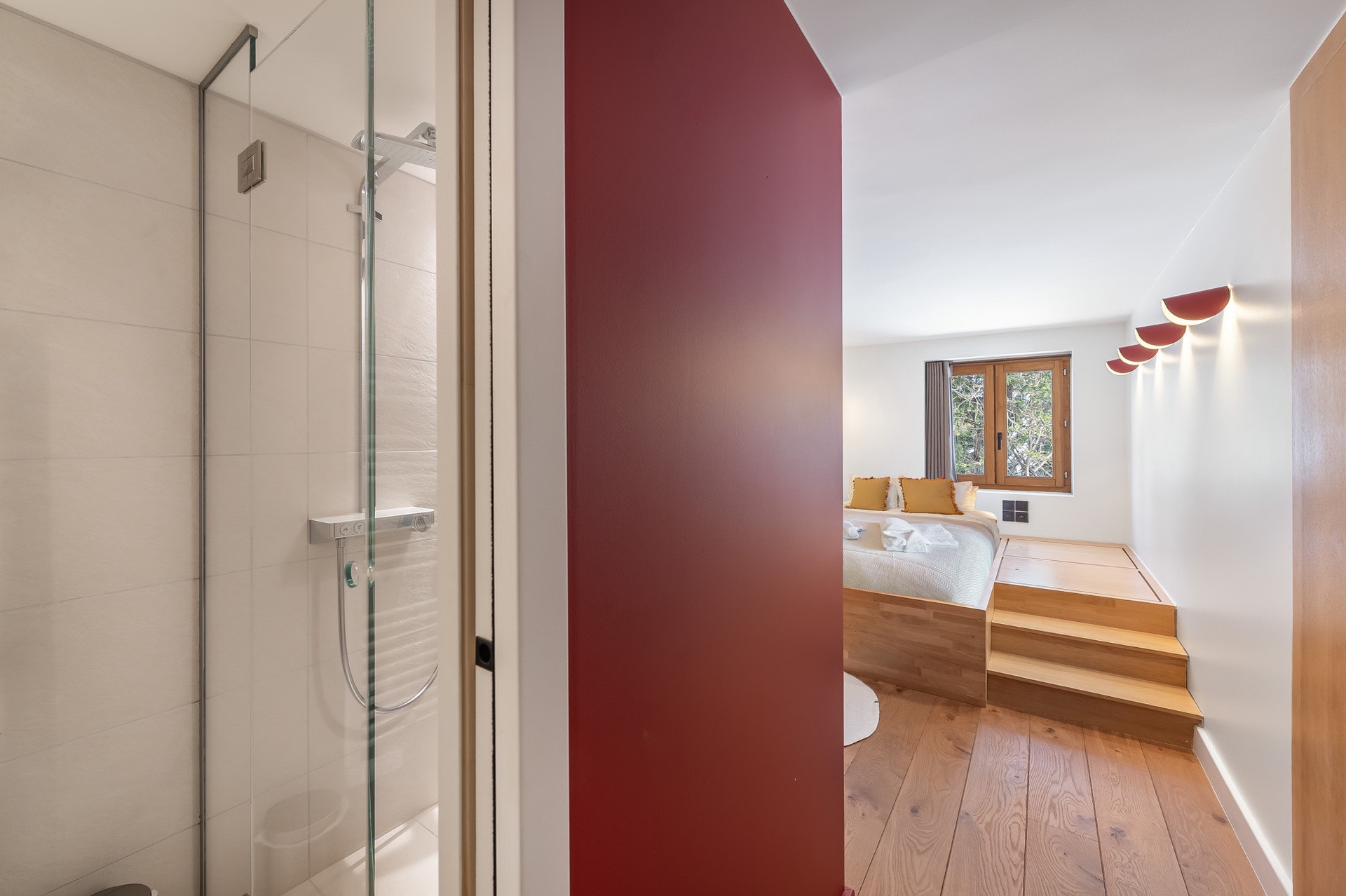 - Private ski room, boot dryer, storage for helmets and skis, in front of the building