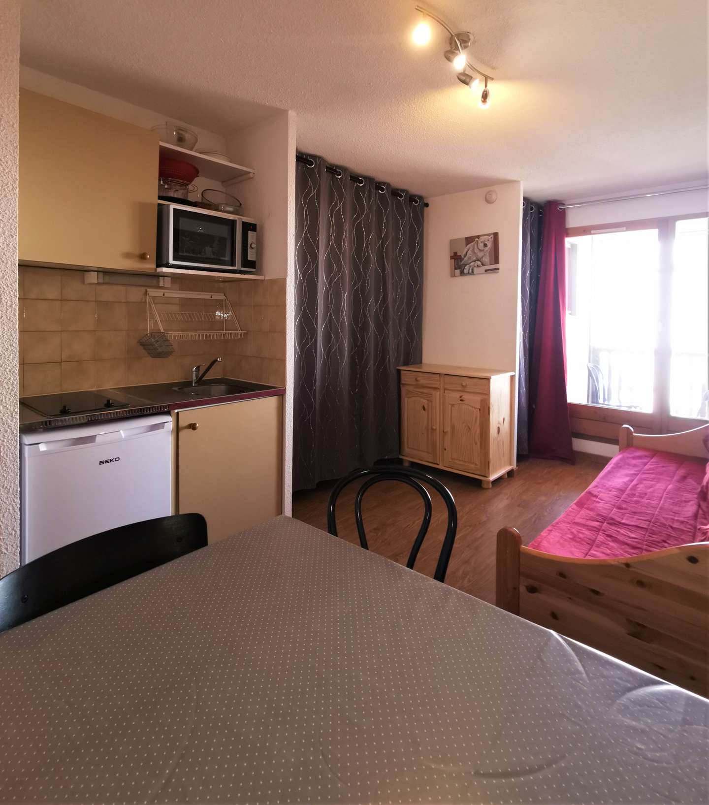 Nice apartment for 4 people. for stays with family or friends, in a quiet residence, with ski-to-door departure. This cozy apartment is very well located as it is very close to the shops and to a bus stop just below the residence.