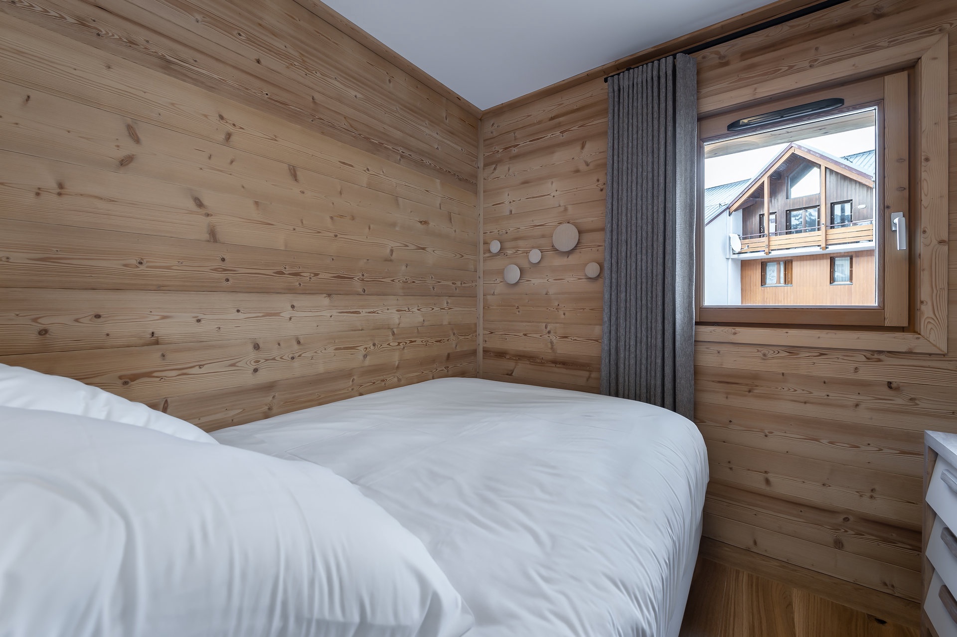 3-bedroom apartment located on the garden level of the CHANTEMERLE Residence, situated 100m from the ski slopes. With a surface area of 76m², it can accommodate 8 people in its 3 bedrooms.