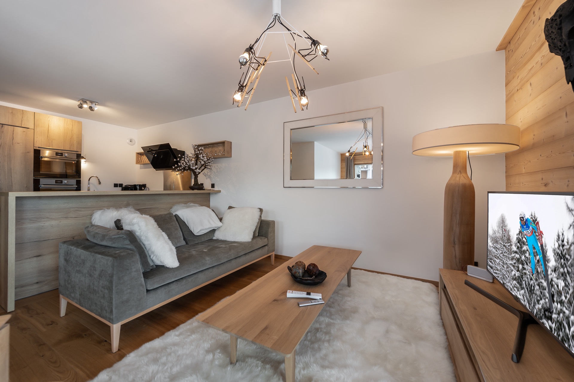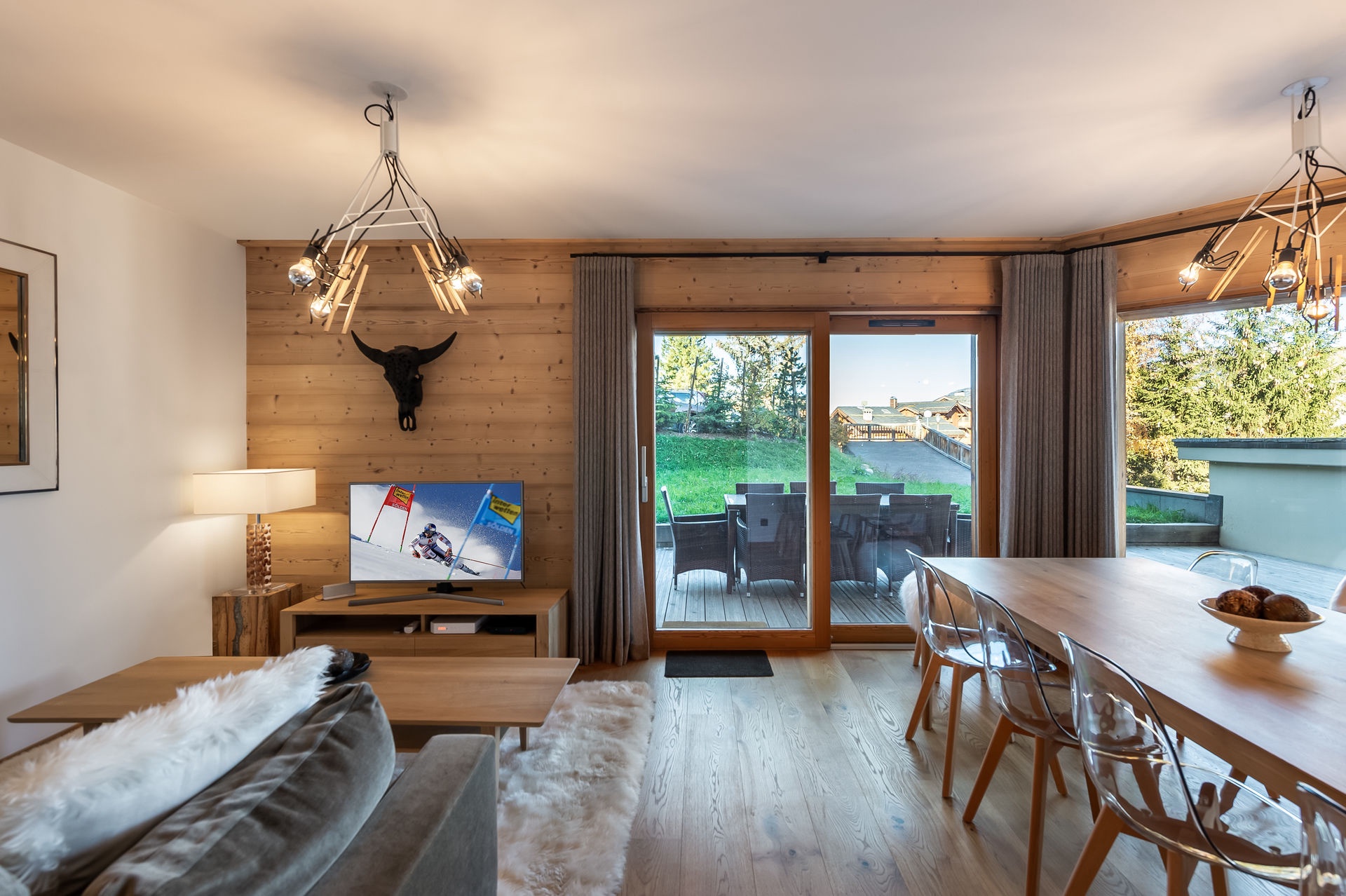- Fully equipped open kitchen: Fondue and raclette appliances, kettle, filter and Nespresso coffee makers, oven, toaster, hood, dishwasher, fridge-freezer, microwave, hand mixer, induction hob.