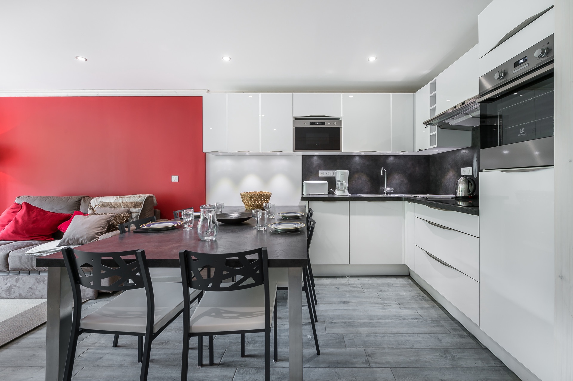 Apartment 405 is a recently renovated 2-bedroom apartment with a surface area of 57m². Equipped for 6/7 people it is located on the 4th floor of the Ourse Bleue residence. From its south-facing balcony it offers a beautiful view over the ski area and the summits.