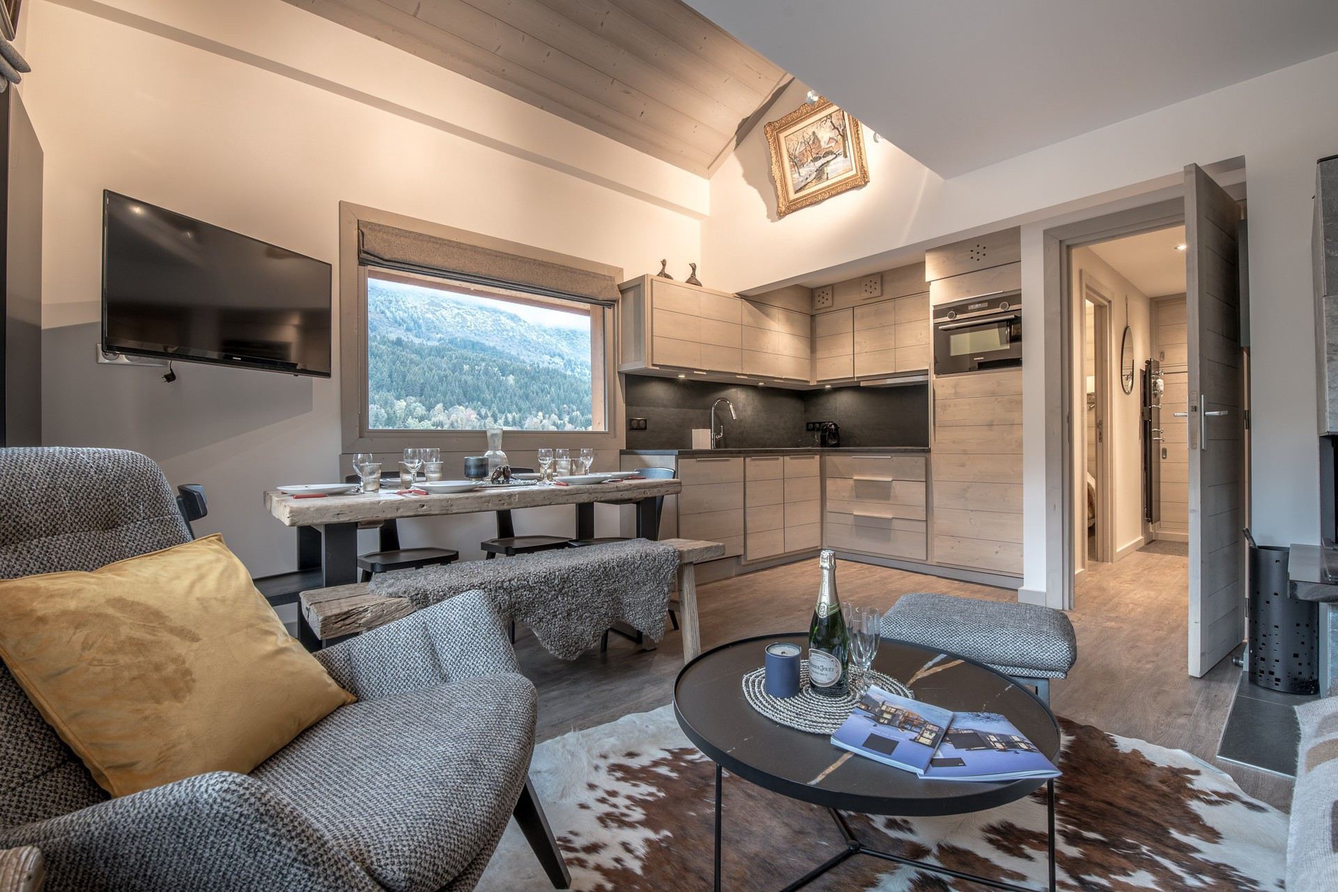 Ravissant appartement d'angle au niveau -1, d'exposition Sud-Ouest, entièrement rénové dans un esprit contemporain chic avec l’une des plus belles vues de la station sur les montagnes, en plein coeur de Méribel Station. Cet appartement de 48 m² permet d'accueillir 4 personnes. Véritable skis au pied, le long de la piste menant au front de neige La Chaudanne, et au départ des télécabines pour la Vallée de Méribel et les 3 Vallées.