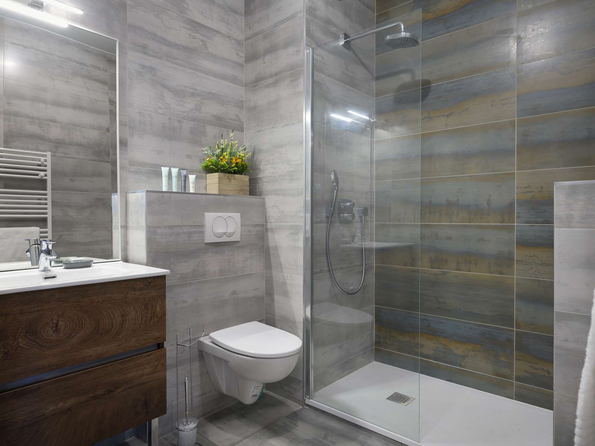- Une salle de bain avec douche à l'italienne, WC et lavabo.