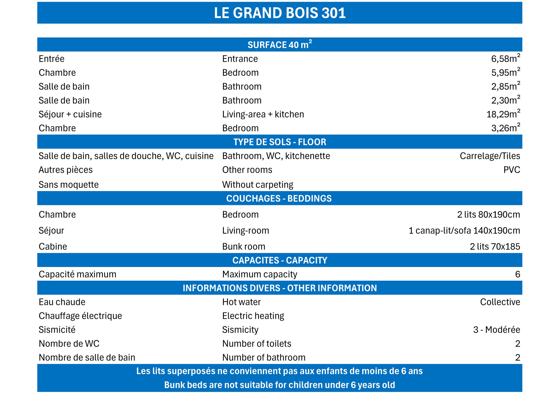 - Capacité : 6 Personnes