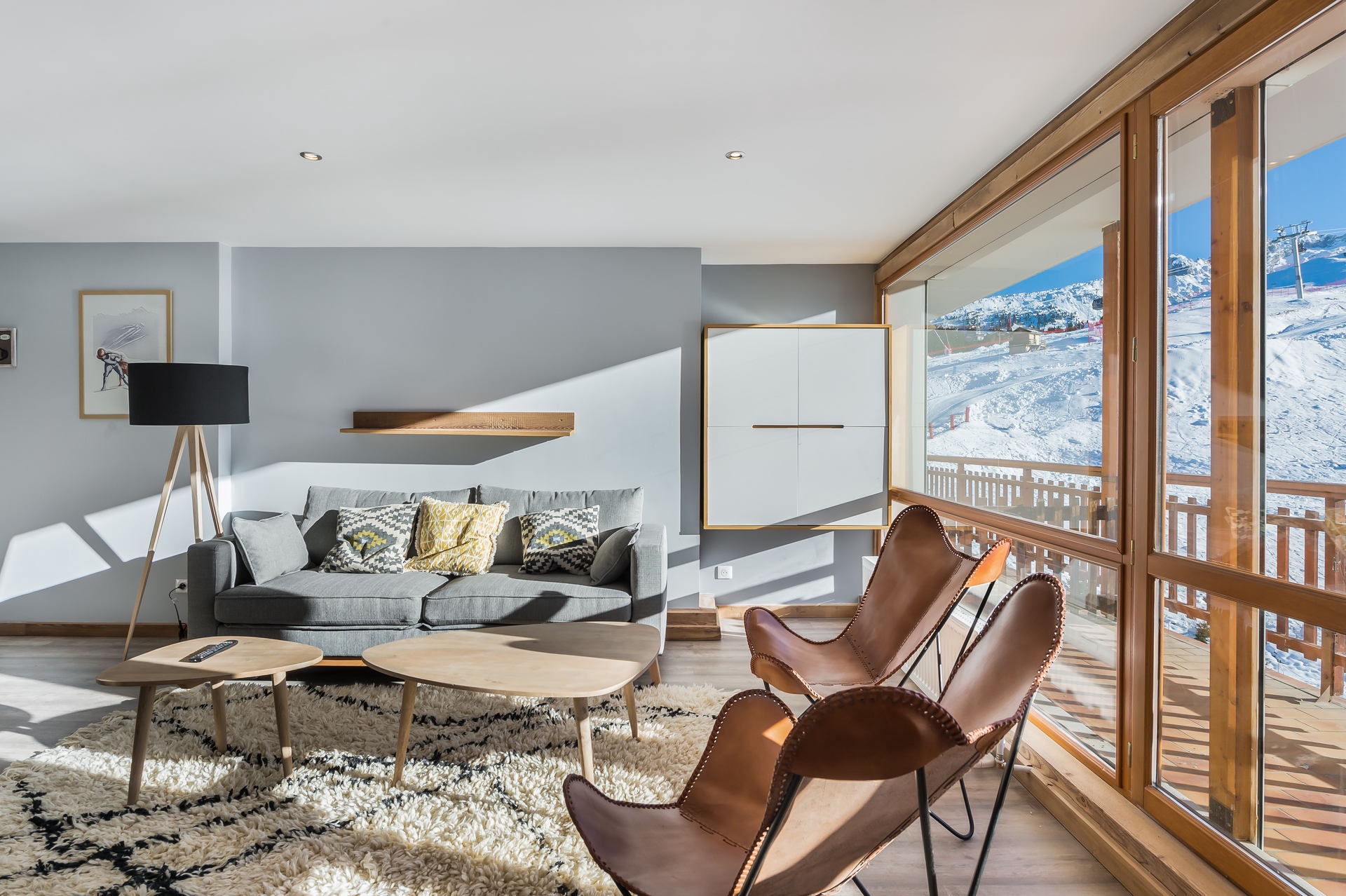 Cet appartement bénéficie d'une superbe vue sur le domaine skiable, les sommets et la vallée et d'un accès direct aux pistes à partir du 7ème étage.