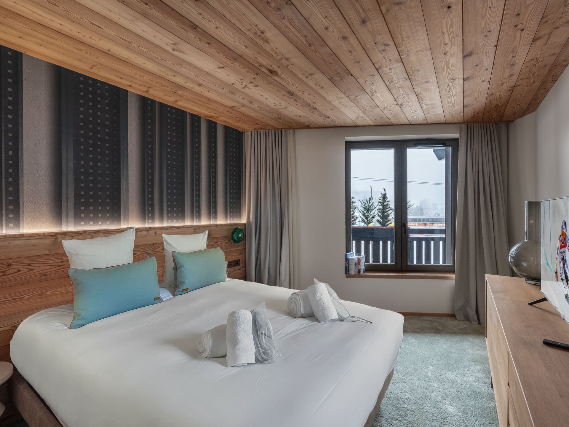 Appartement neuf d'environ 86m², pour 4 adultes et 2 enfants avec 2 chambres et un coin montagne. Les pistes de skis sont aux pieds de la résidence, accessible par le ski room.