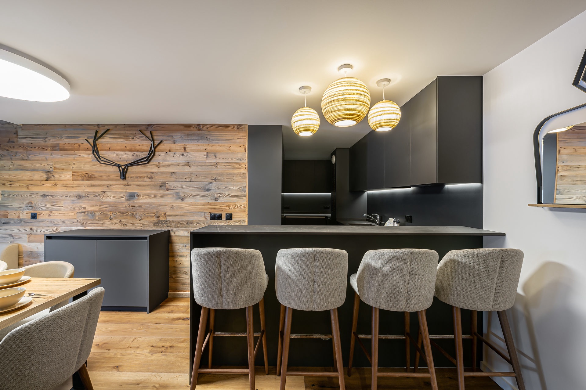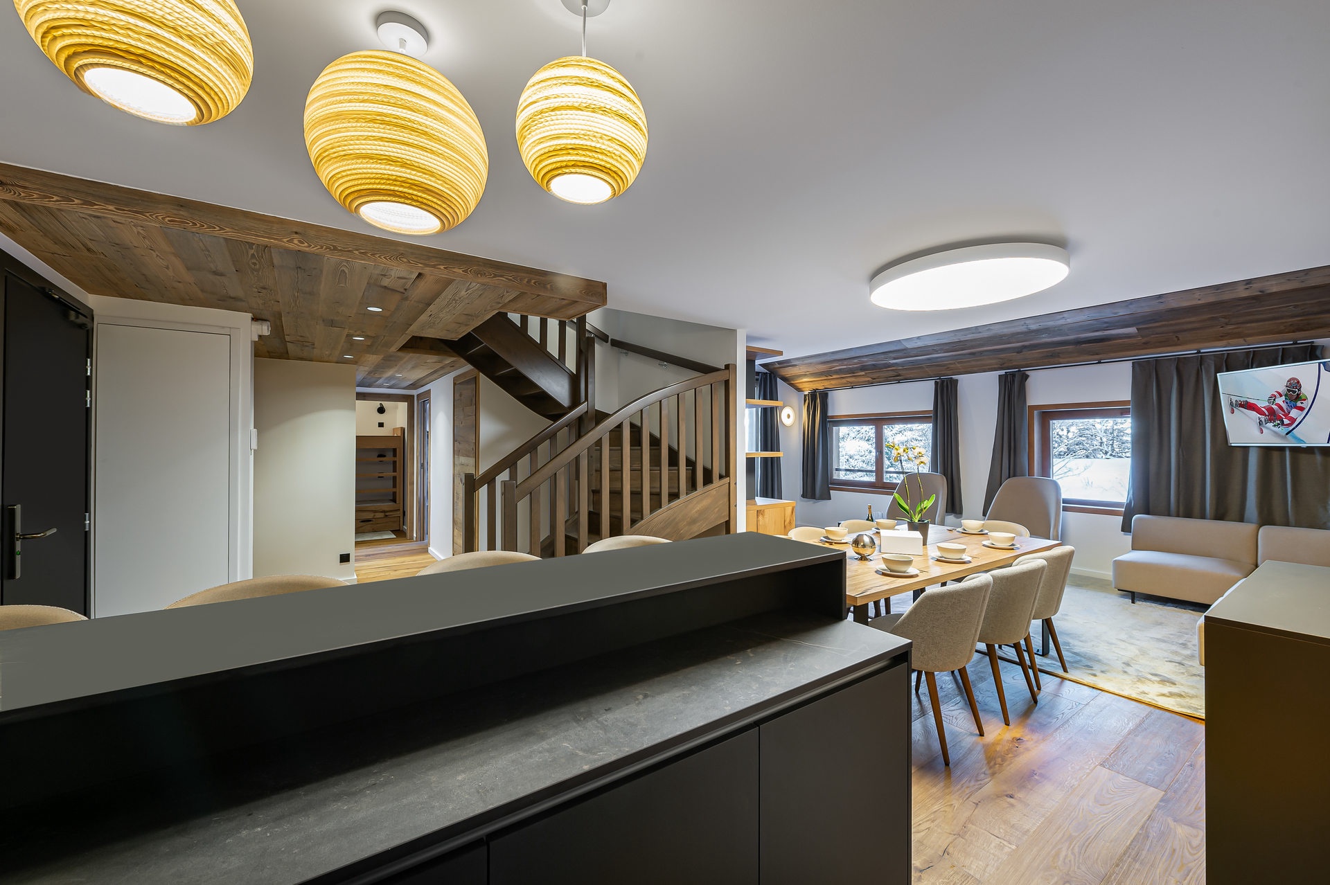 Bel appartement 4 pièces + cabine de 117m² pouvant accueillir 6 adultes et 4 enfants. L'appartement est situé dans une résidence de standing, à 300m du front de neige de Courchevel Village.