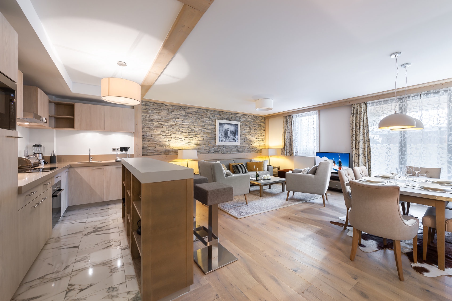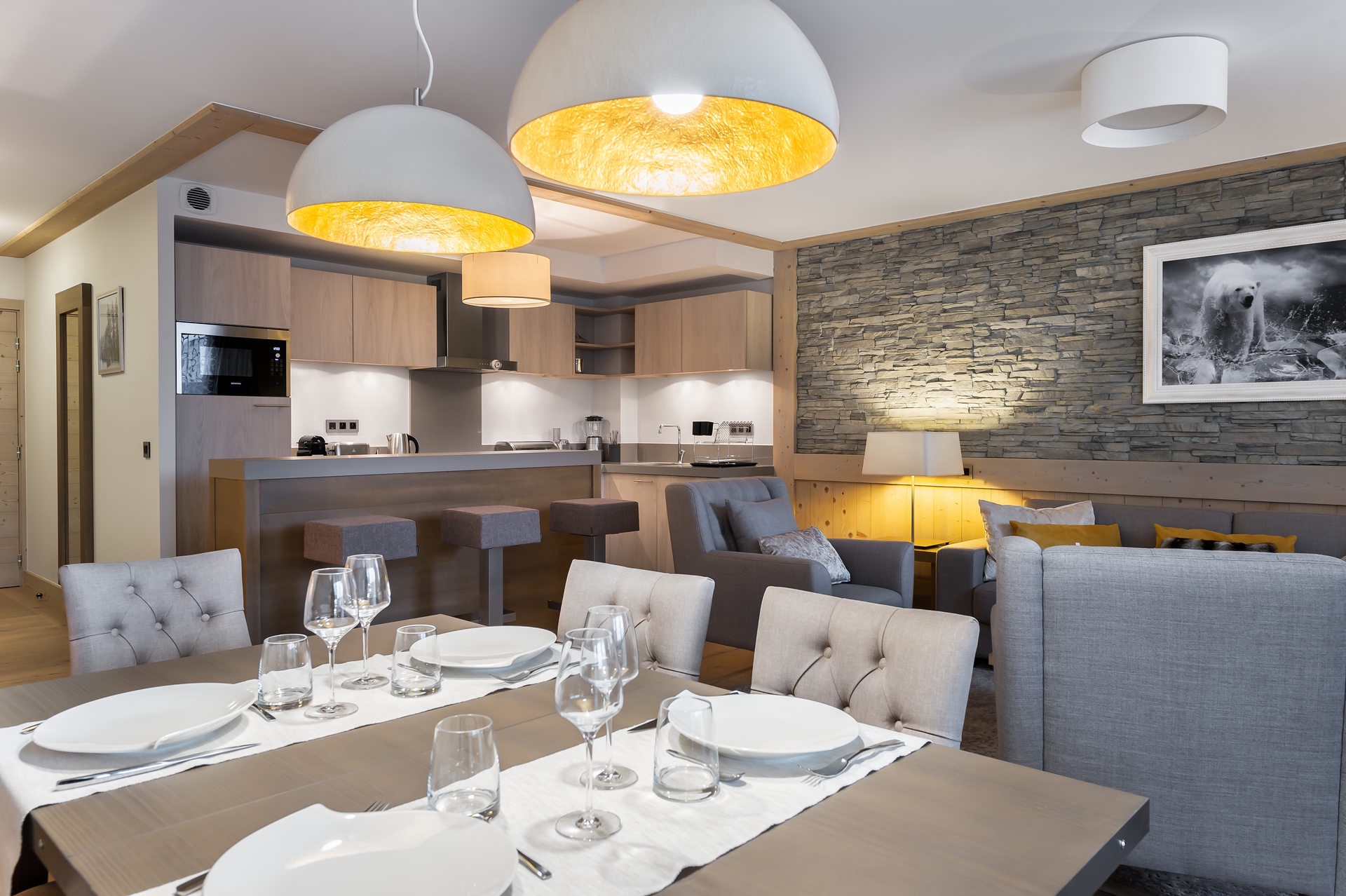 - Cuisine ouverte entièrement équipée