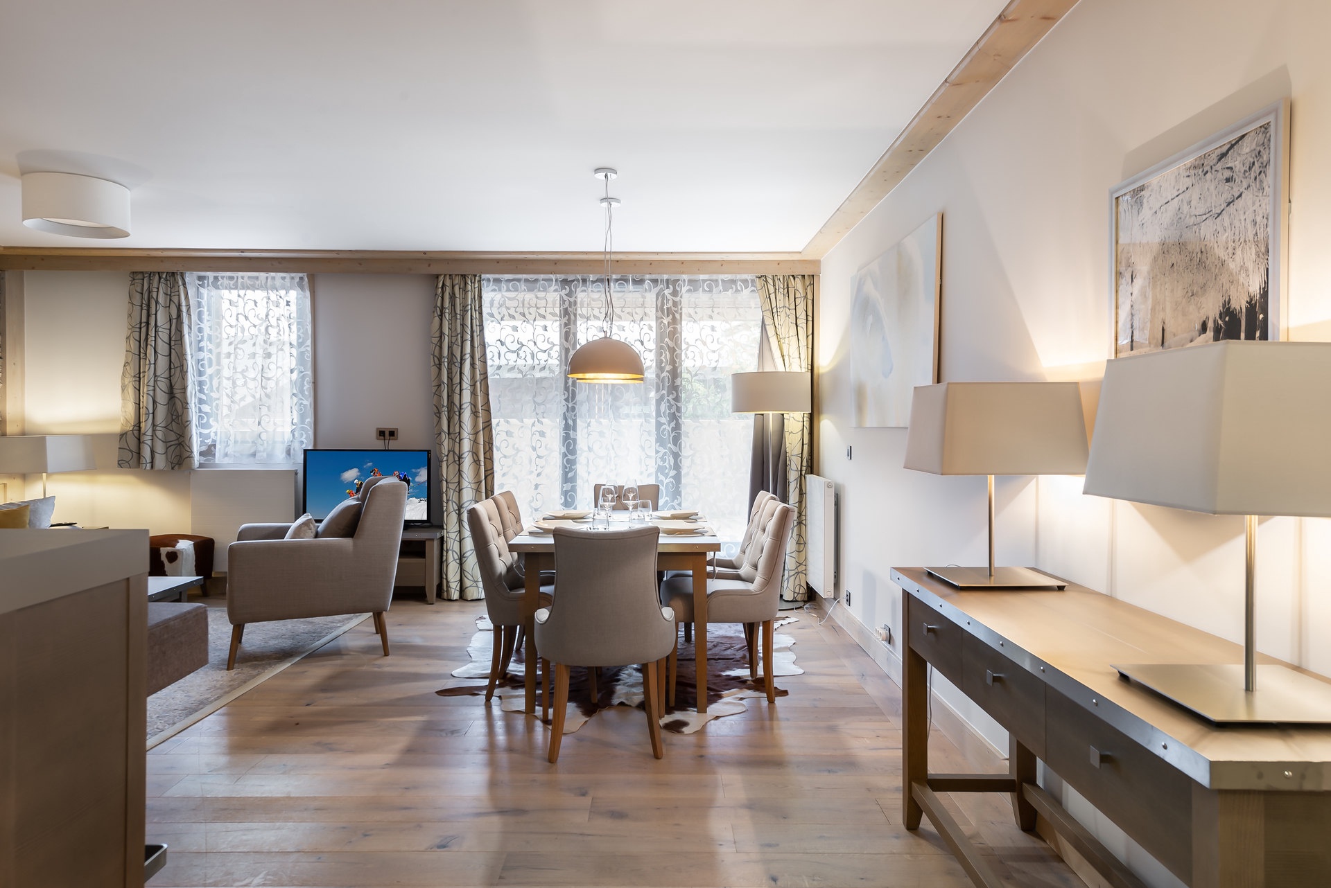 - Spacieux séjour avec télévision, espace repas