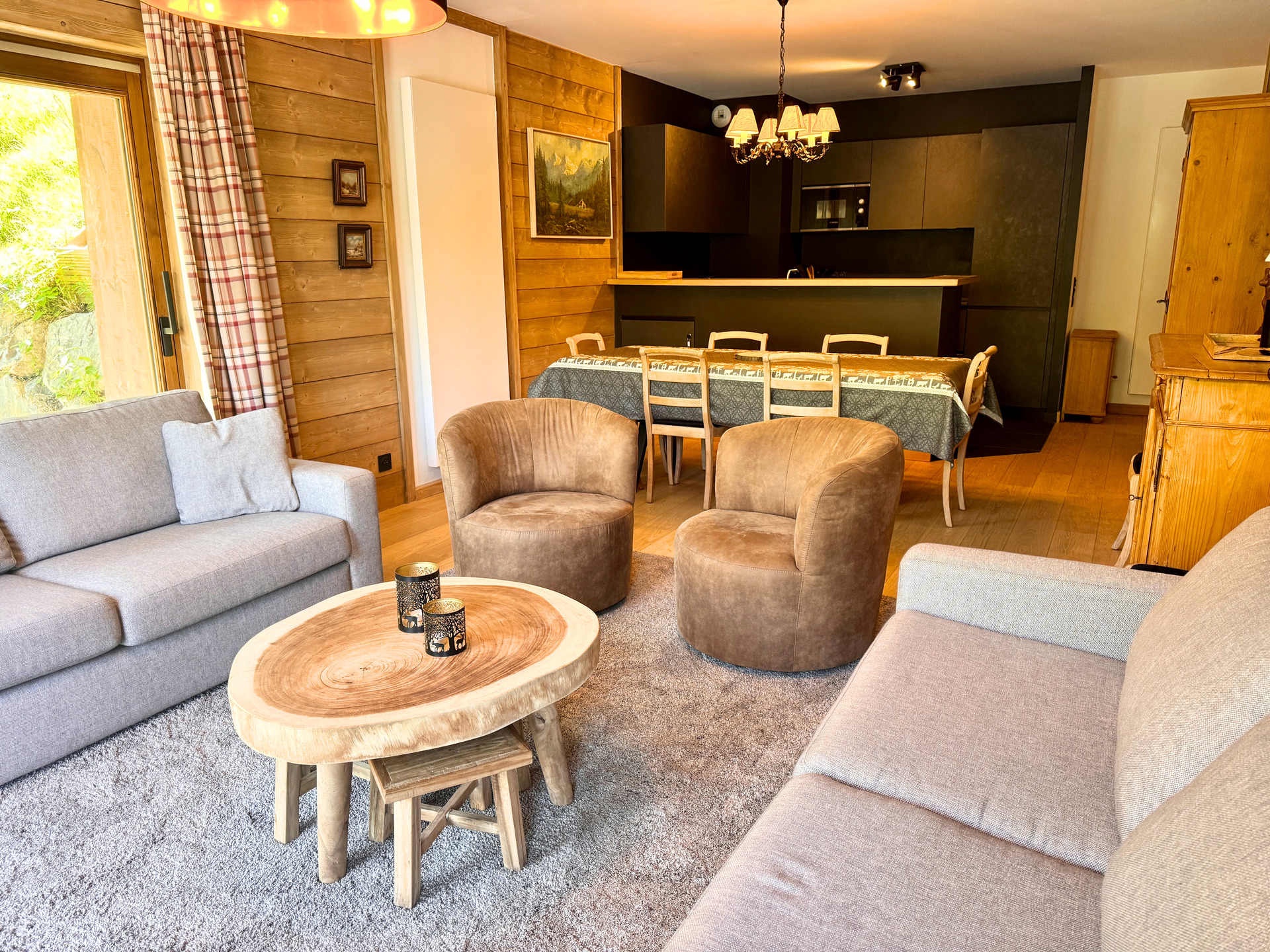 Cet appartement de 79m² pouvant accueillir jusqu'à 7 personnes est situé au rez de chaussée d'une résidence chalet bénéficant d'un accès rapide aux pistes et aux commerces (proximité de l'arrêt intermédiaire de la télécabine piétonne des Chalets et d'un arrêt de navette gratuite).