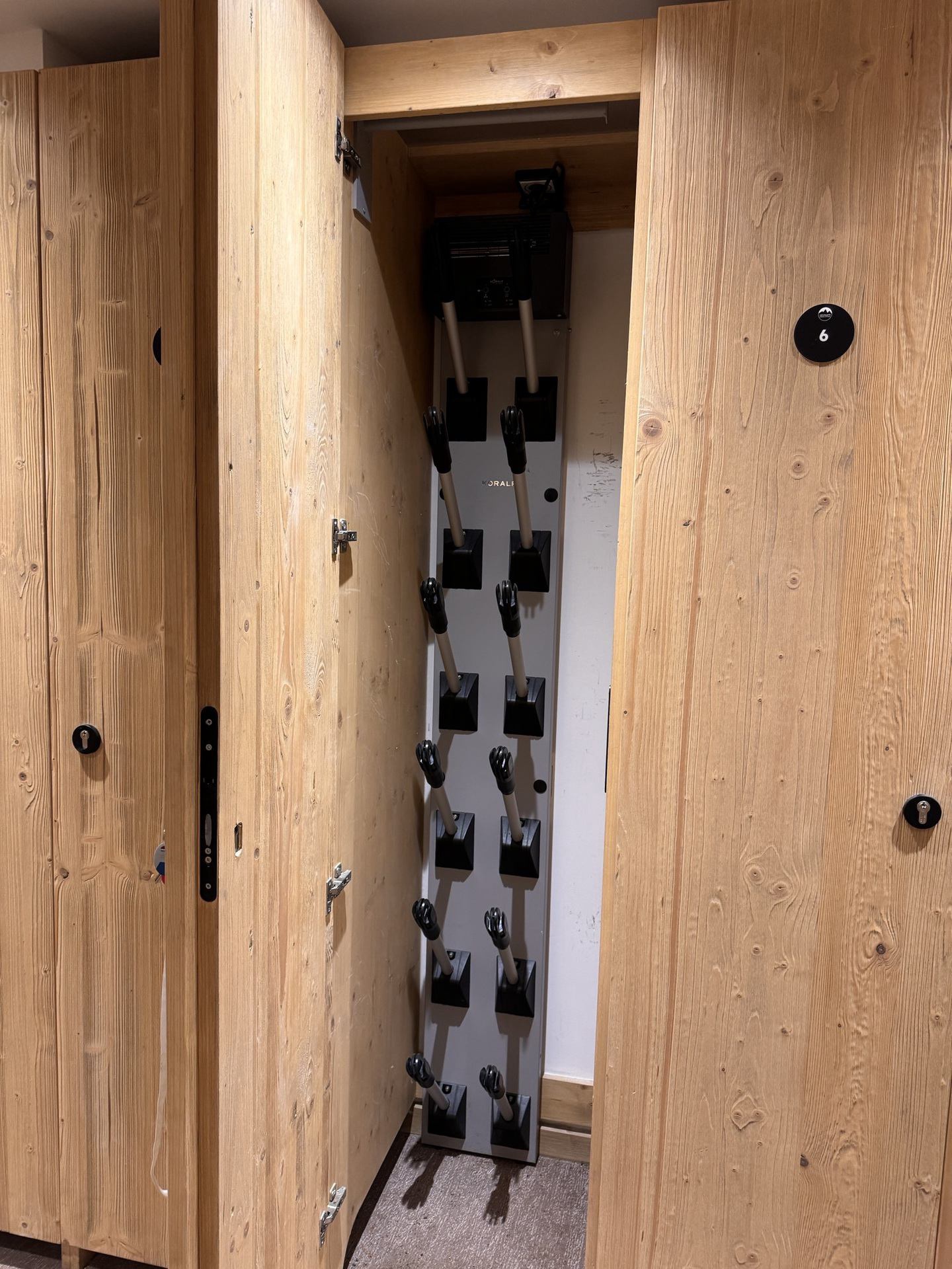 Une télévision, un casier à ski équipé d'un sèche-chaussures pour 6 paires, un emplacement de parking couvert.