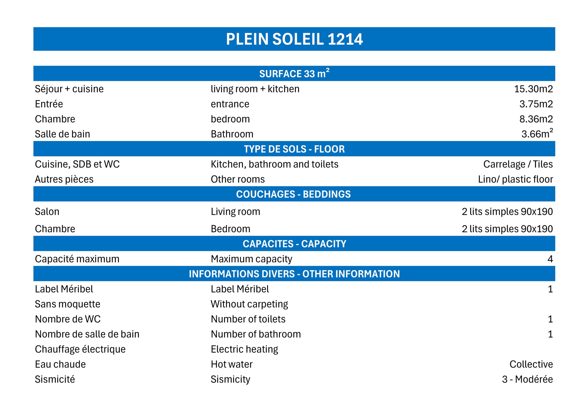 - Capacité : 4 Personnes