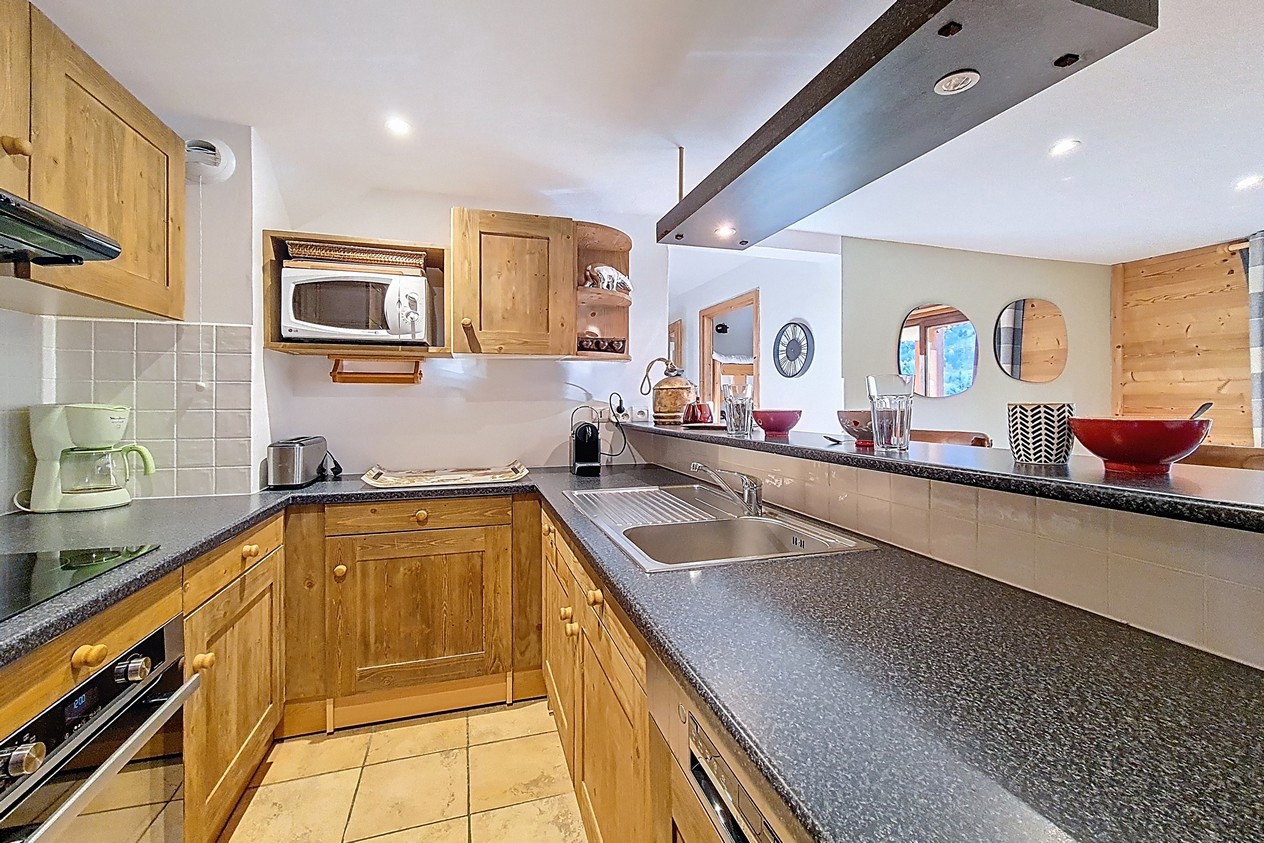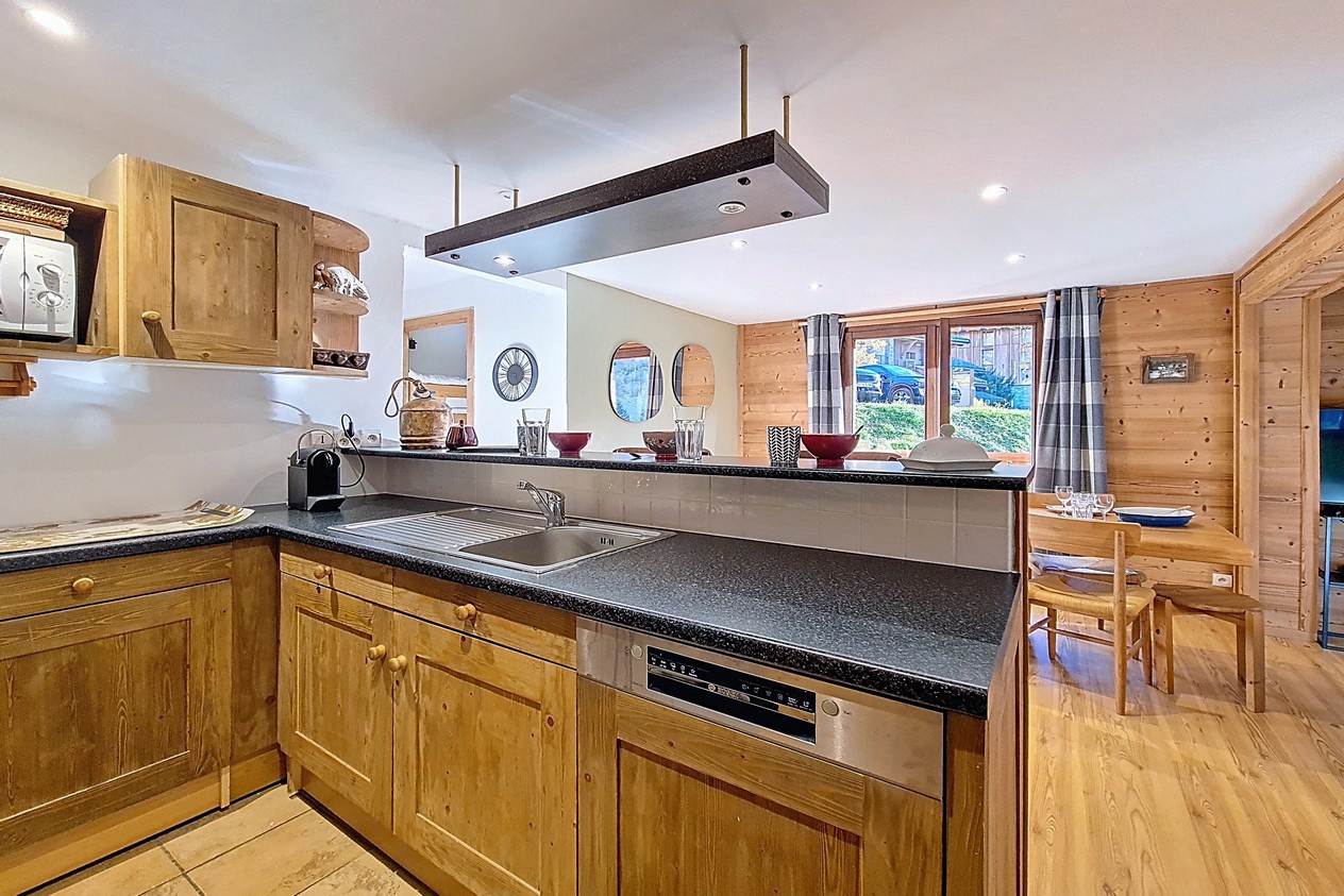 Cuisine : ouverte et équipée de 4 plaques induction, hotte, grand réfrigérateur avec une partie congélateur séparée, four traditionnel, micro-ondes, lave-vaisselle, cafetière électrique, grille-pain, bouilloire, cafetière Nespresso , combiné pierrade/raclette et service à fondue.