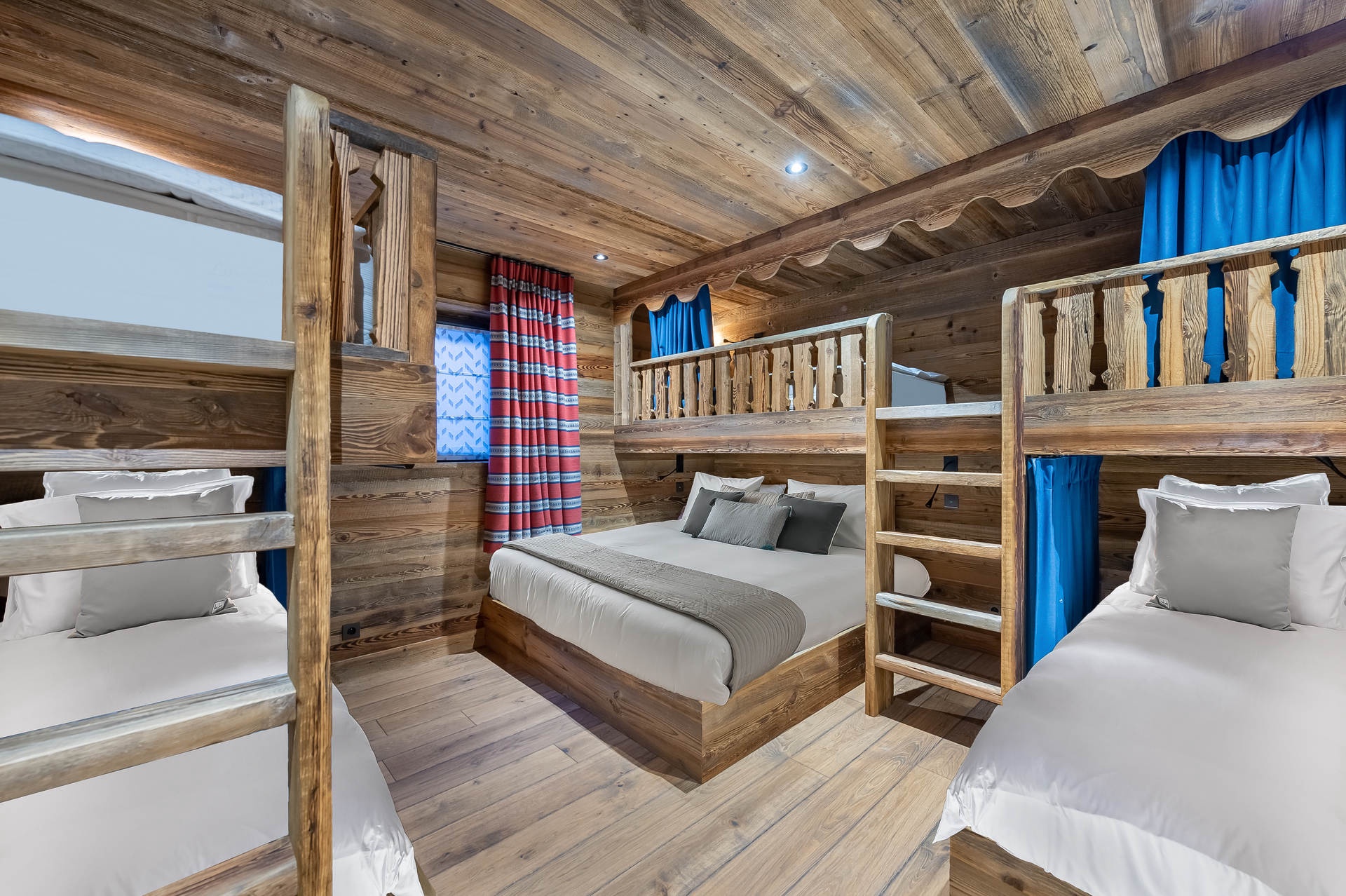 - Chambre dortoir avec 3 lits simples et 1 lit double en suite, salle de bains et douche et dressing indépendant