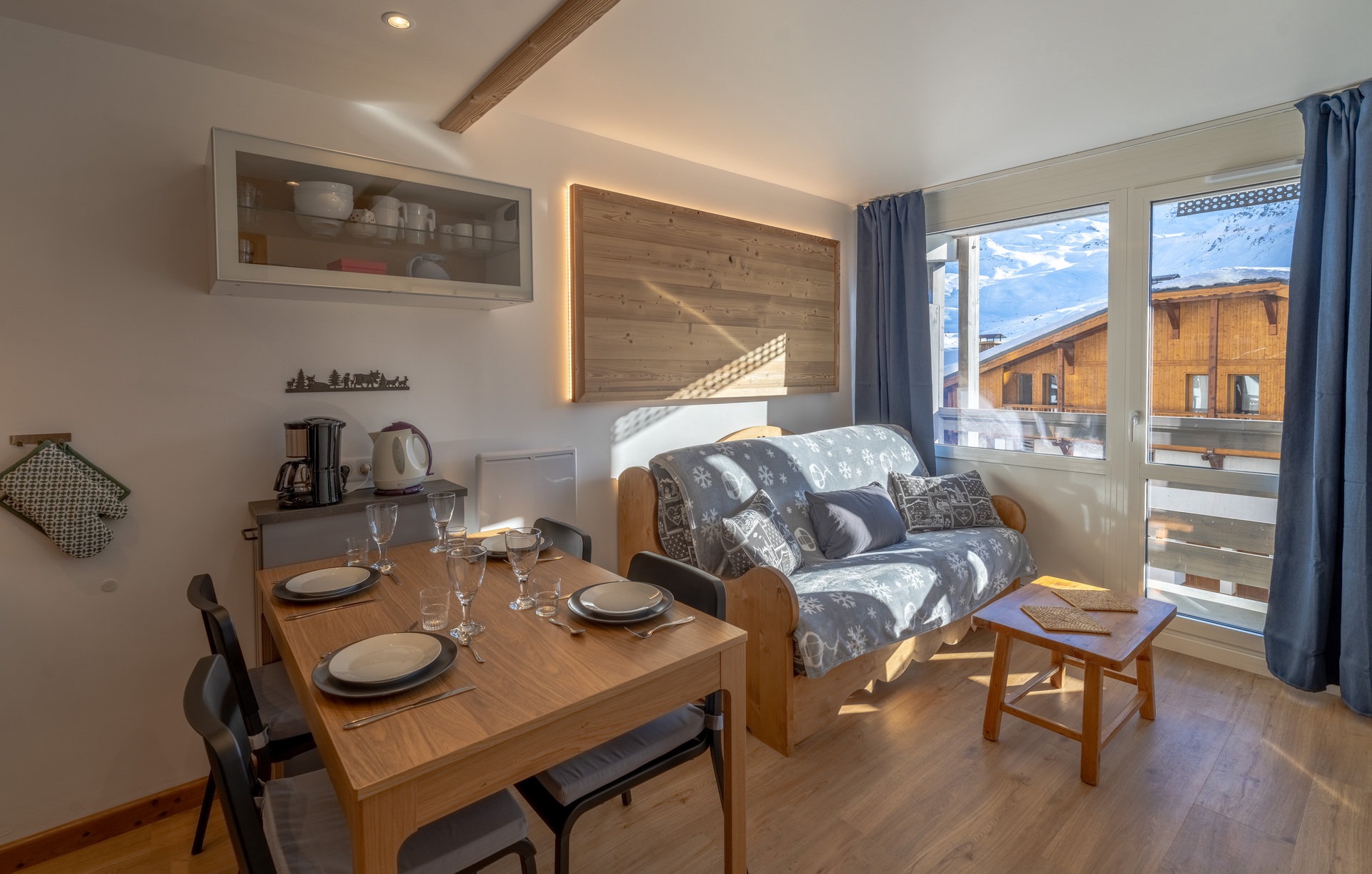 Chaleureux appartement entièrement rénové situé au 2ème étage de la Résidence LES LAUZIERES à Val Thorens, proche des pistes. Il est équipé pour 4 personnes et disposé comme suit: