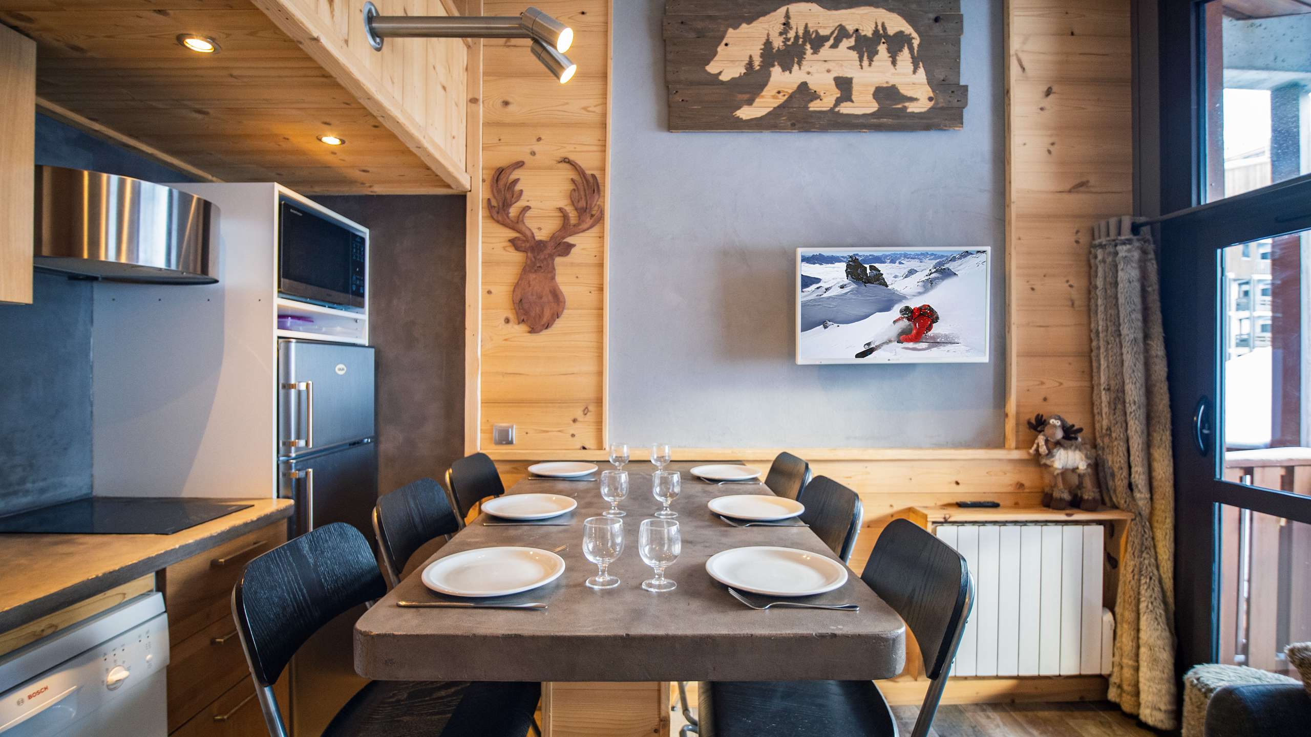 Appartement rénové en duplex-mezzanine de 28m² au 6ème et dernier étage comportant tout le confort nécessaire. - Dans le séjour, un canapé vous accueillera pour les soirées en famille devant la télé et une table pour 4 personnes pour partager tous vos repas ensemble. - Aucun couchage dans le séjour, 1 chambre cabine avec lits superposés et 1 deuxième cabine a l'étage avec lit double (hauteur sous plafond varie entre 1.50 et 1.78). l'accès à la mezzanine se fait par un escalier de meunier abrupte. - Dans la cuisine, vous trouverez : micro-onde, lave-vaisselle, plaques de cuisson vitro-céramiques, réfrigérateur, cafetière Nespresso, grille-pain et bouilloire. - La salle de bain est équipée d'une douche, d'un lavabo , d'un sèche-cheveux et de toilettes. - Du balcon orienté Est, la vue est dégagée sur les montagnes. - Un casier à ski privatif spacieux est à votre disposition au rez de chaussée de la résidence. Situé dans la résidence Silveralp dans la partie la plus calme de la station. Résidence entièrement rénovée durant l’été 2015. A 10 m des pistes, accessible aux débutants à ski ou par ascenseur juste en face à la résidence, vous êtes également proche des commerces, garderie, parking, loueurs de matériel et des 3 écoles de ski. Il suffit de traverser la rue pour acheter les croissants du matin !