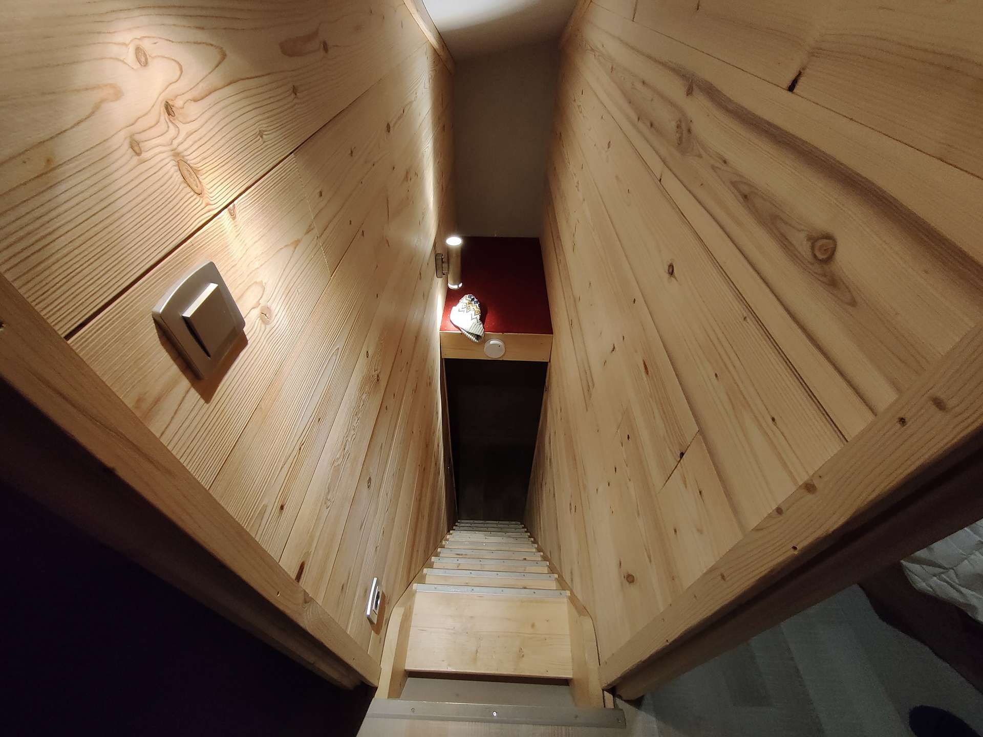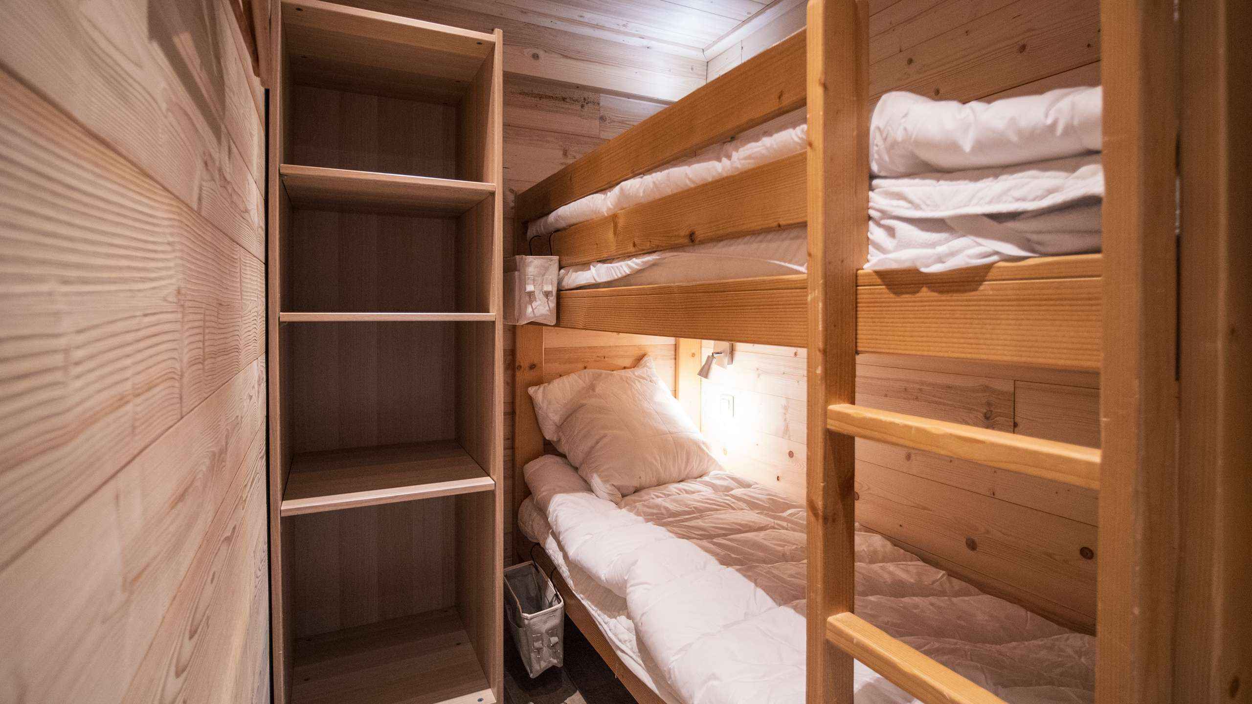 - Description: Chambre cabine avec un lit superposer (70*190cm) équipé de 2 oreillers carrés et une grande couette.
