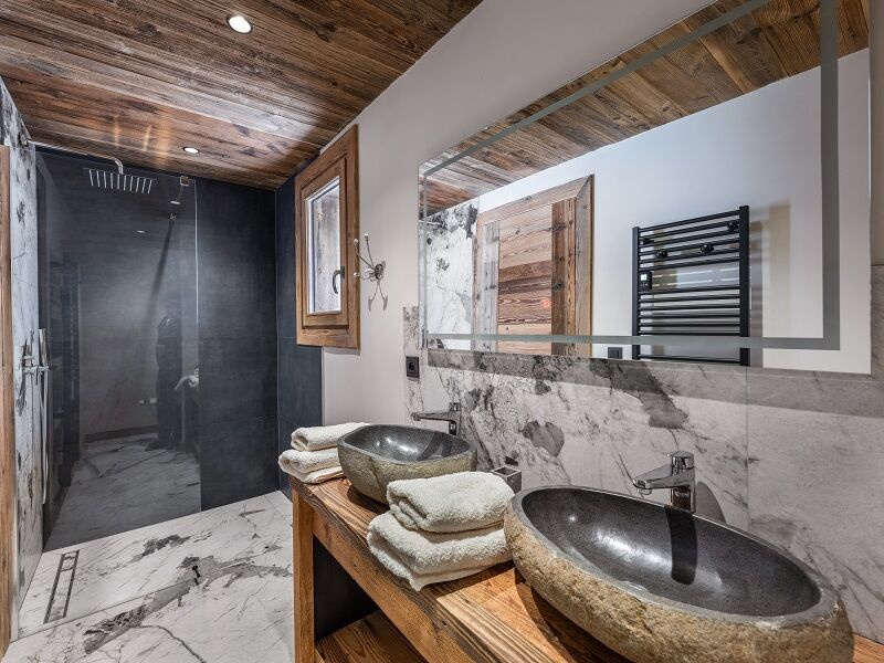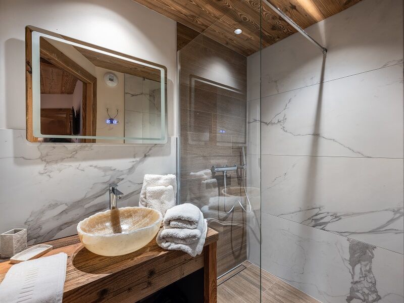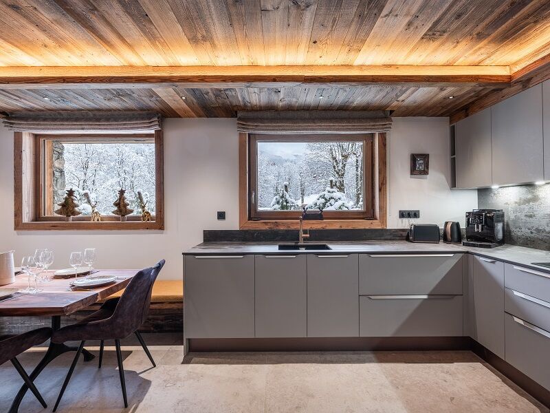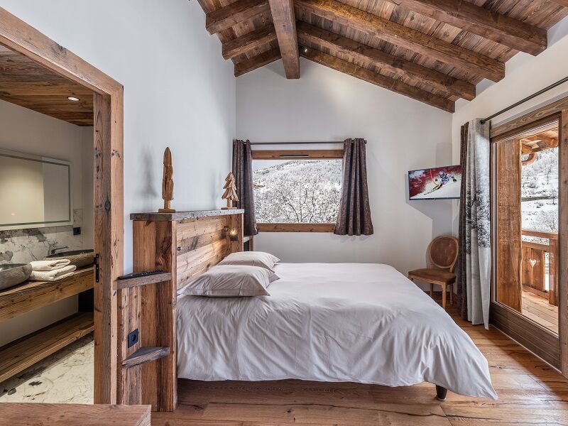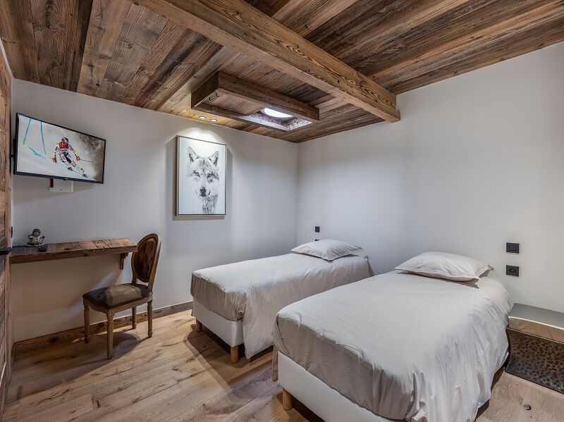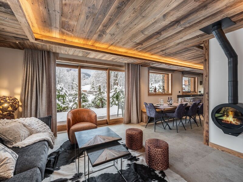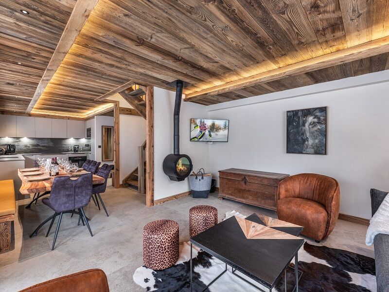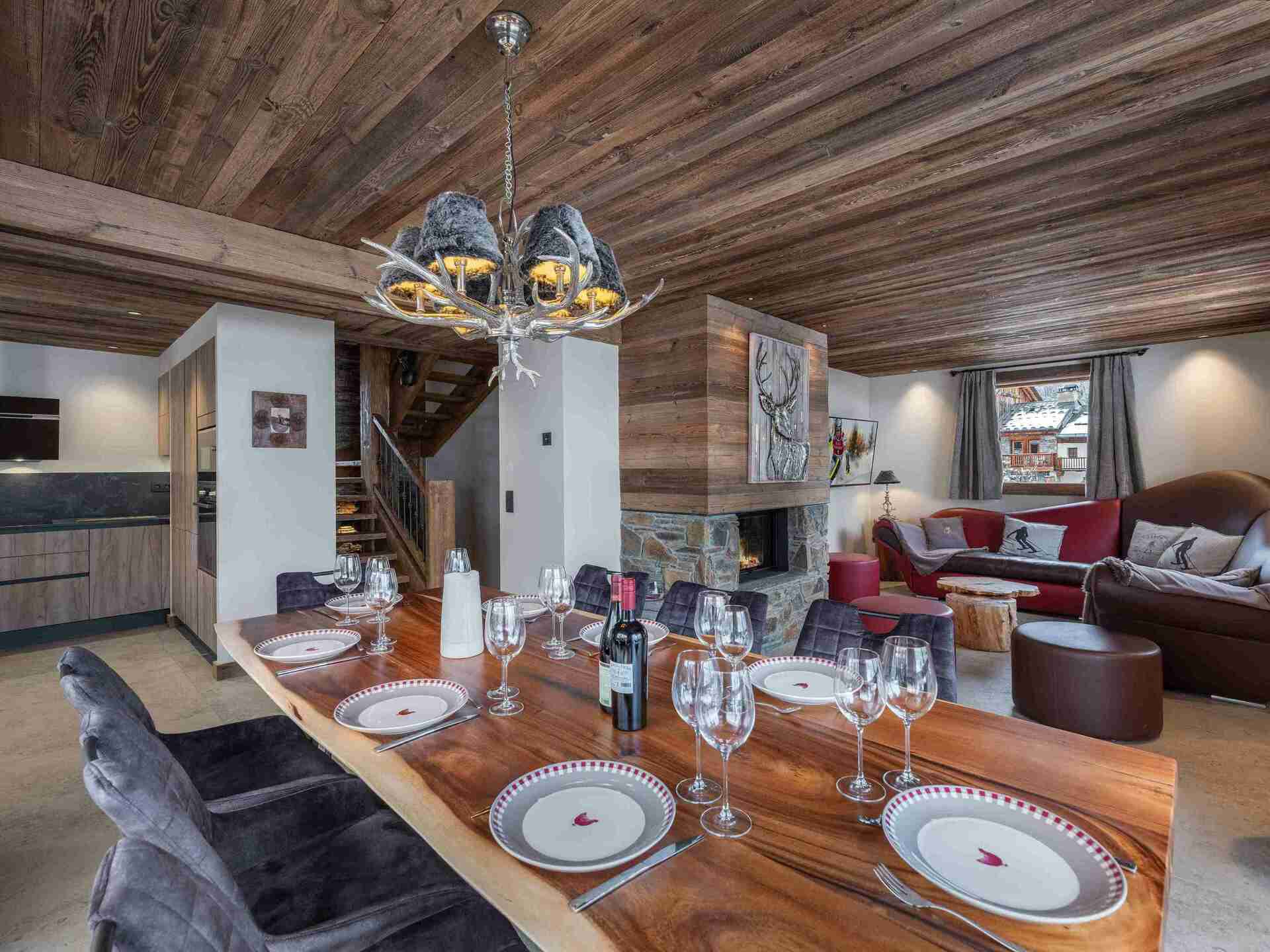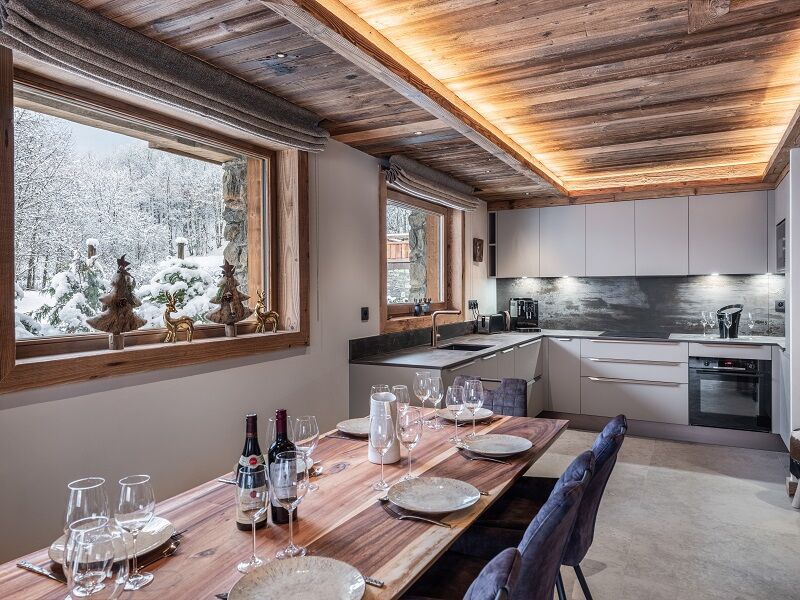 Ce chalet de 160 m2, Label Méribel 4****, situé sur les hauteurs du paisible hameau du Raffort, allie tradition et modernité pour votre confort.