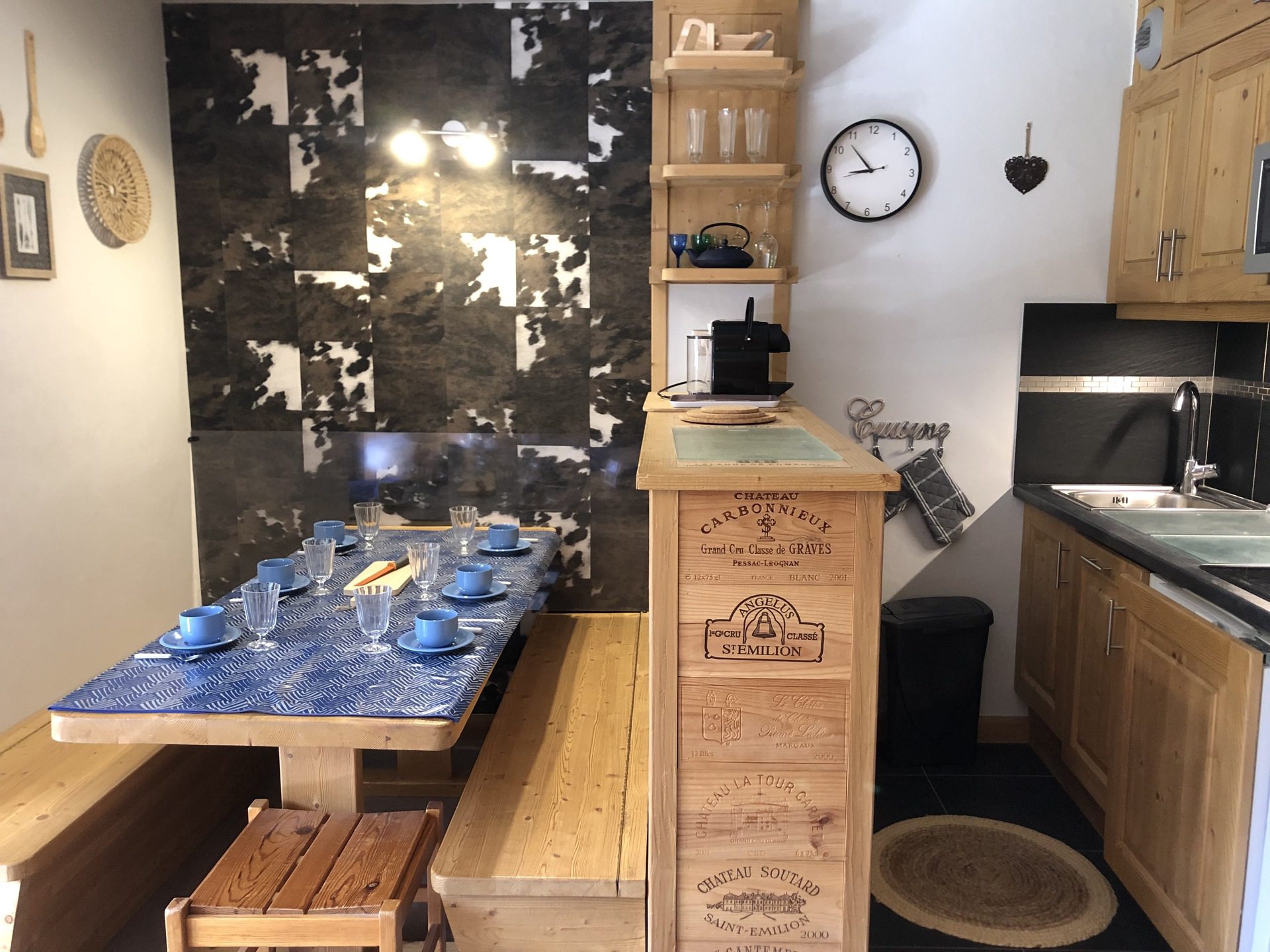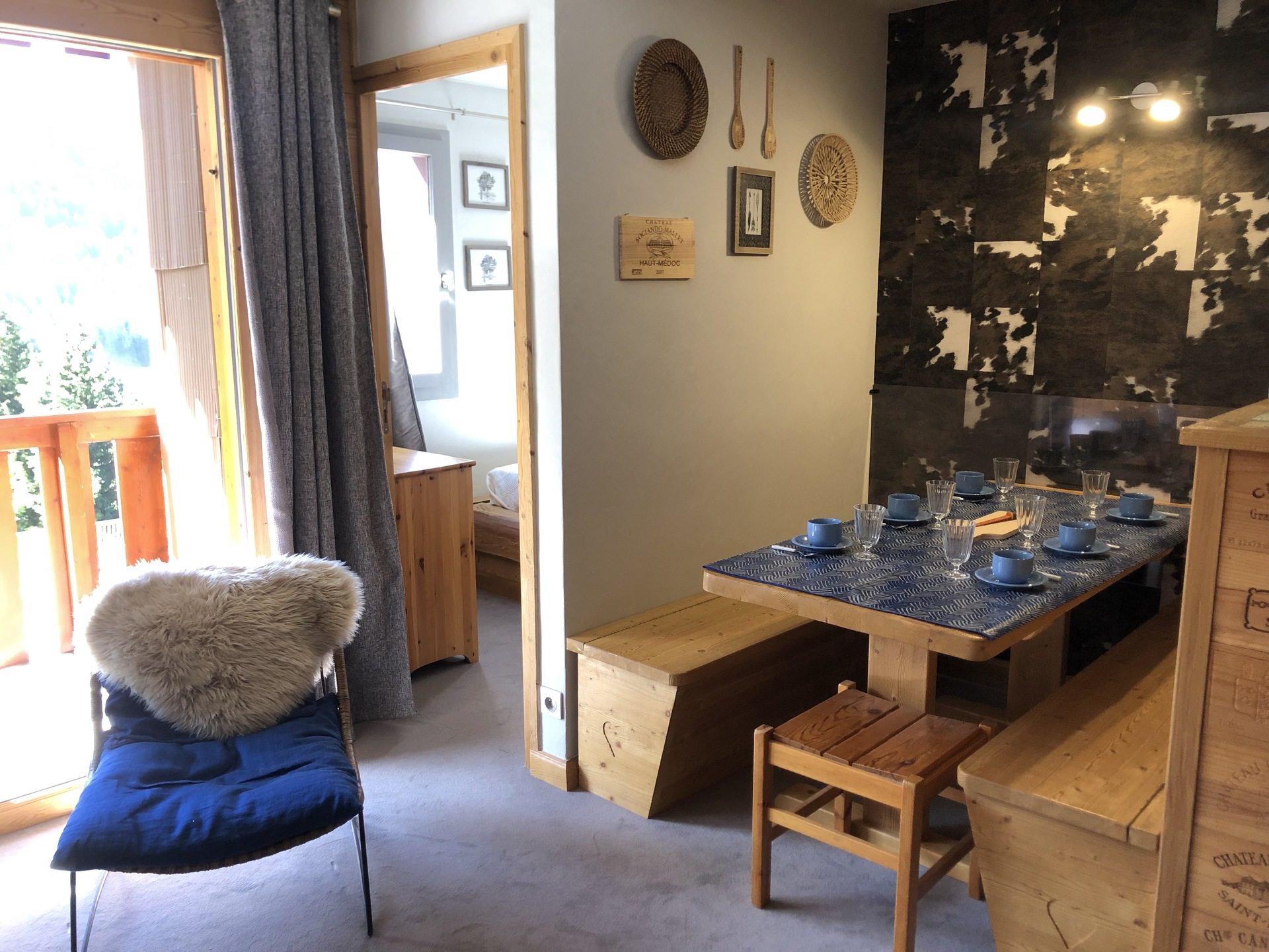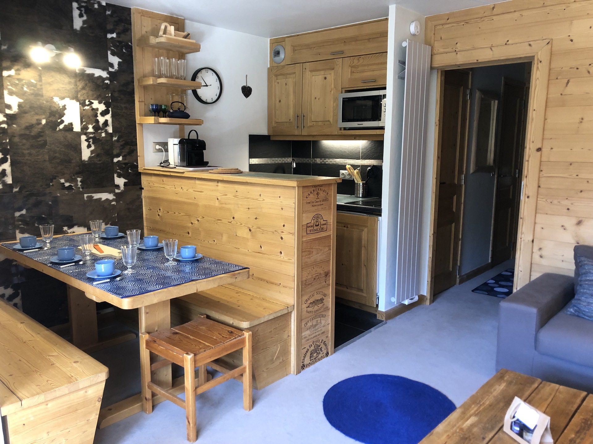 Pour votre prochain séjour aux sports d'hiver ou vos vacances d'été à la montagne réservez ce 2 pièces cabine situé à Méribel Mottaret avec une terrasse exposée Sud Ouest et une belle vue sur la montange.