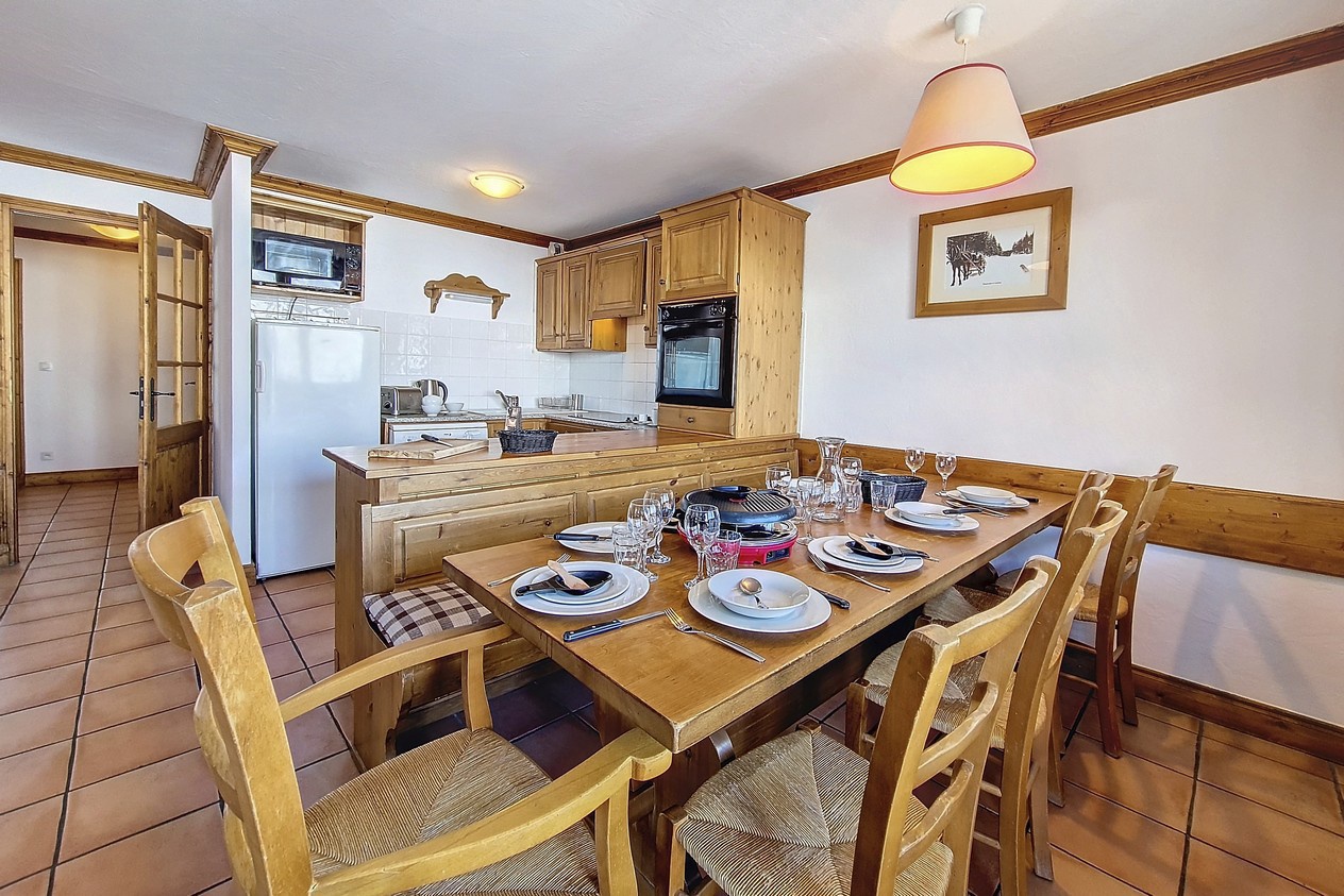 Cuisine ouverte équipée de 4 plaques vitro céramique, hotte, four traditionnel, micro-ondes, lave vaisselle, réfrigérateur avec freezer, grille pain, cafetière et bouilloire. L'appartement est équipé d'un appareil à raclette, un appareil à fondue et un rice cooker.