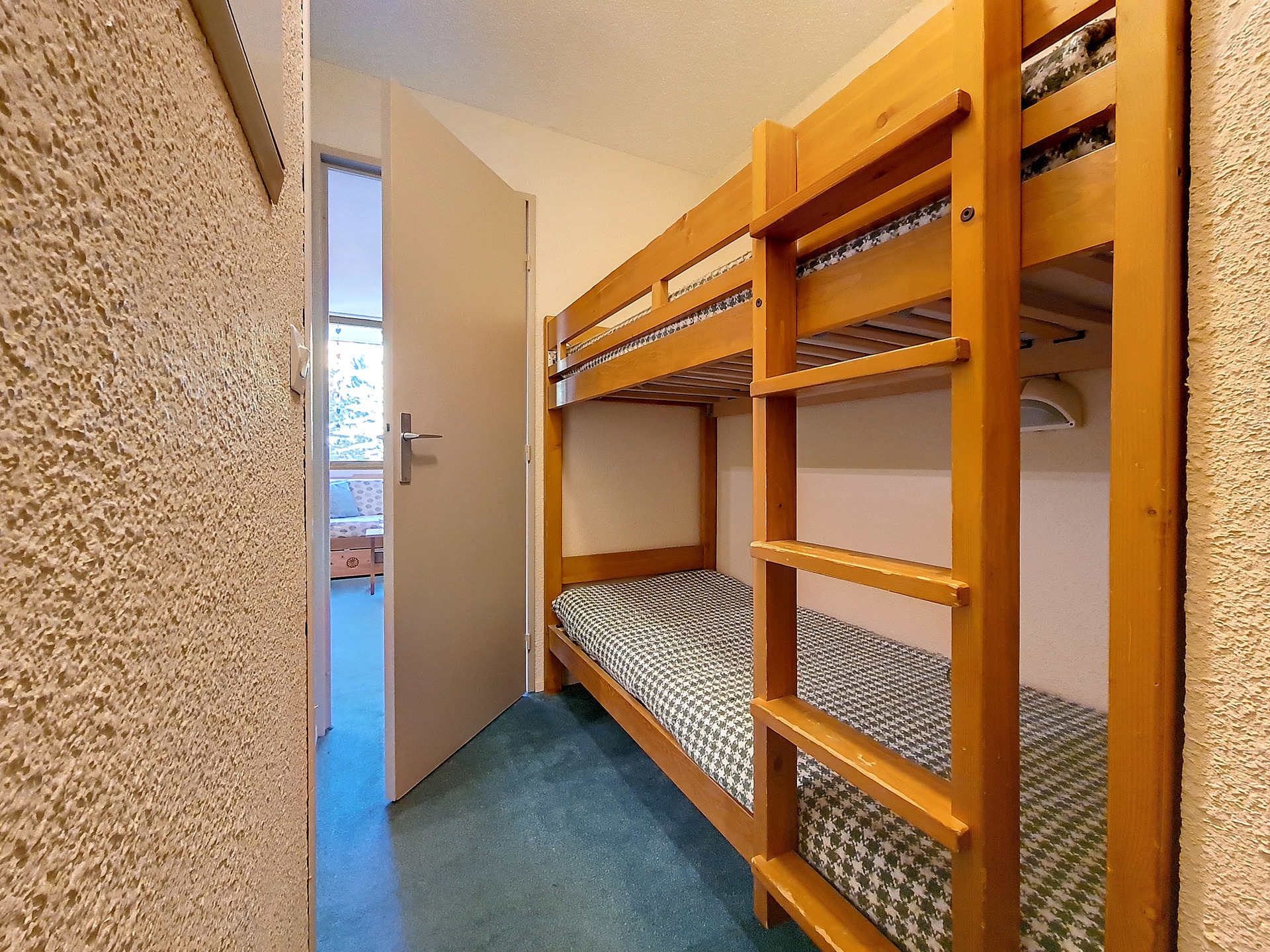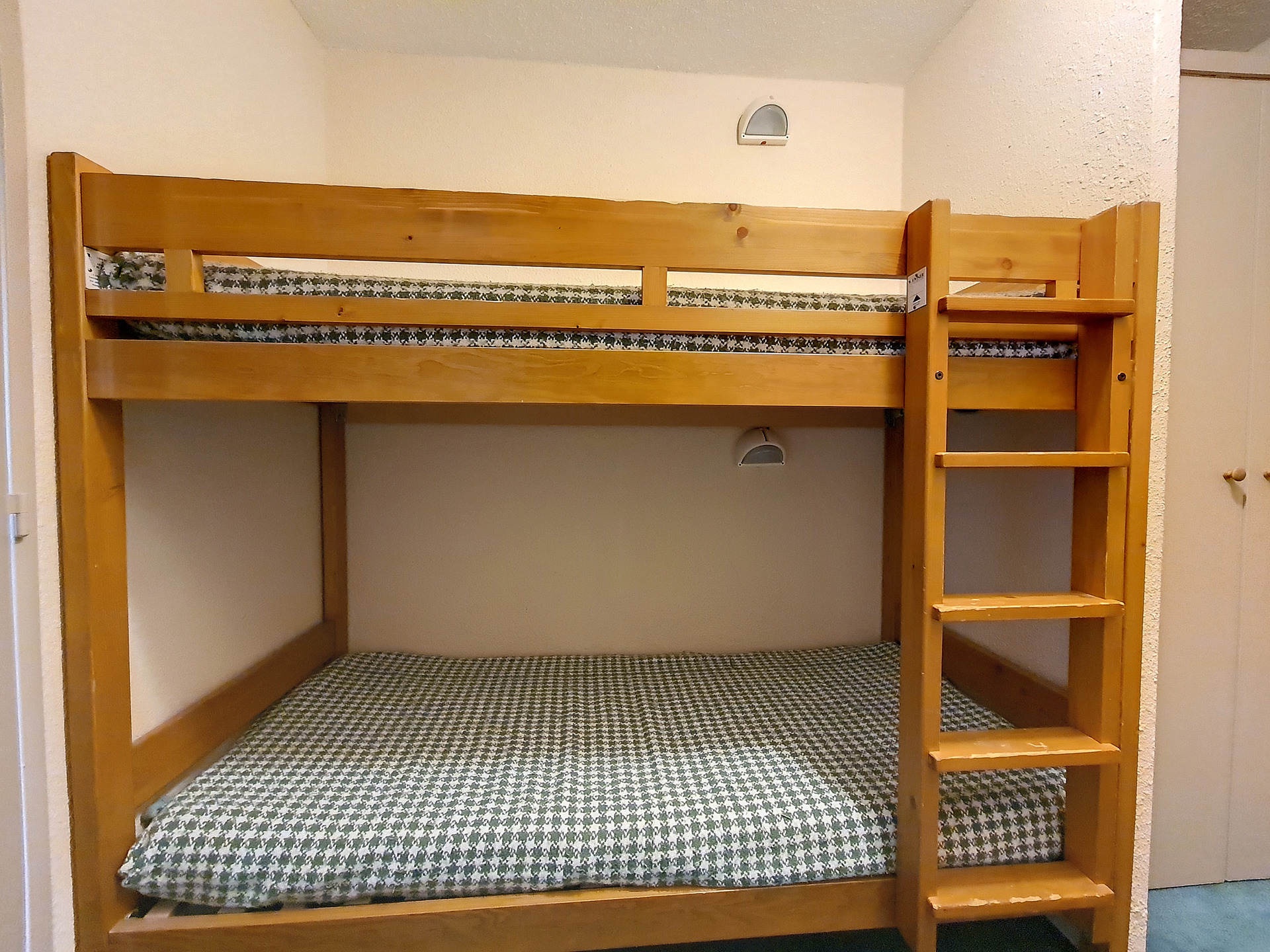 Coin montagne (Entrée séparée du séjour par une porte) : 2 lits 1 personne superposés.