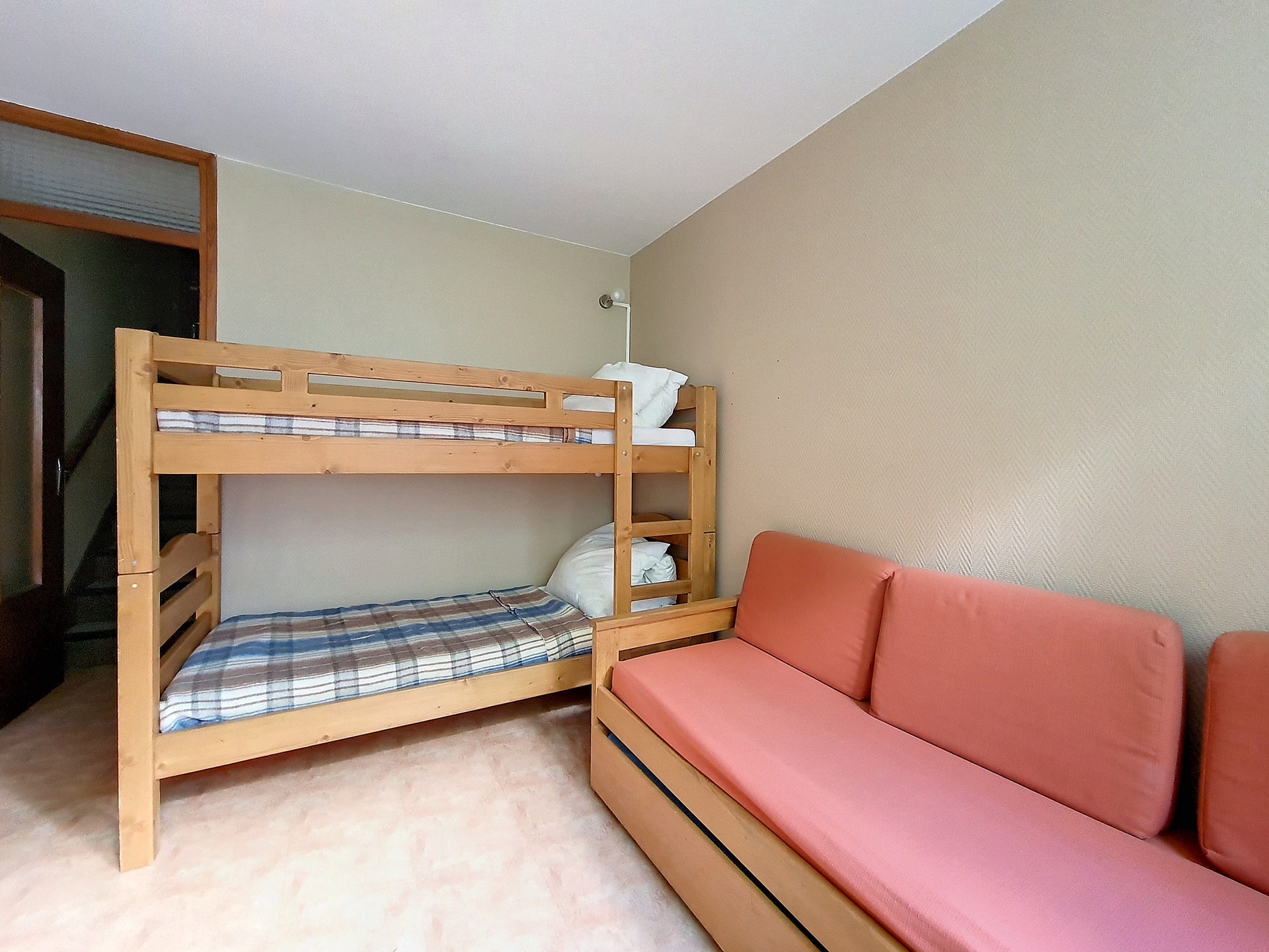 Chambre : 1 lit 1 personne et 1 lit gigogne 1 personne, 2 lits simples superposés. (Le couchage en hauteur ne convient pas à des enfants de moins de 6 ans).
