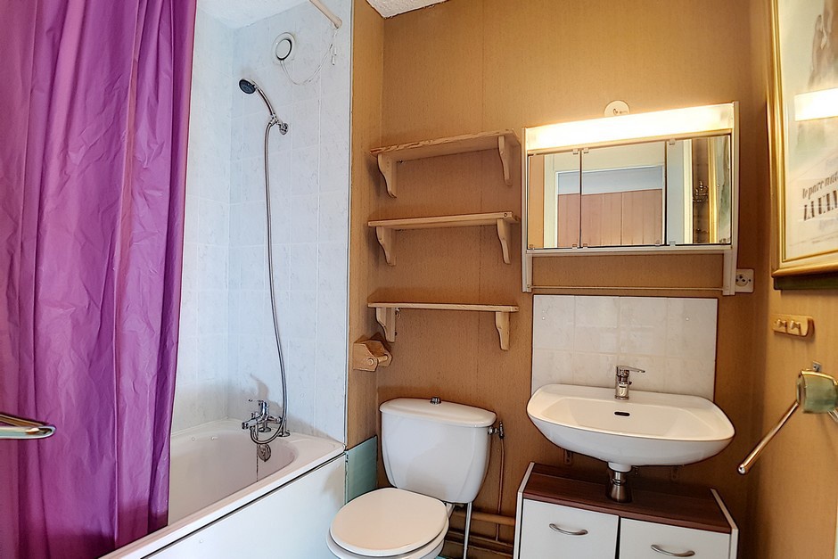 Salle de bains avec baignoire et WC.
