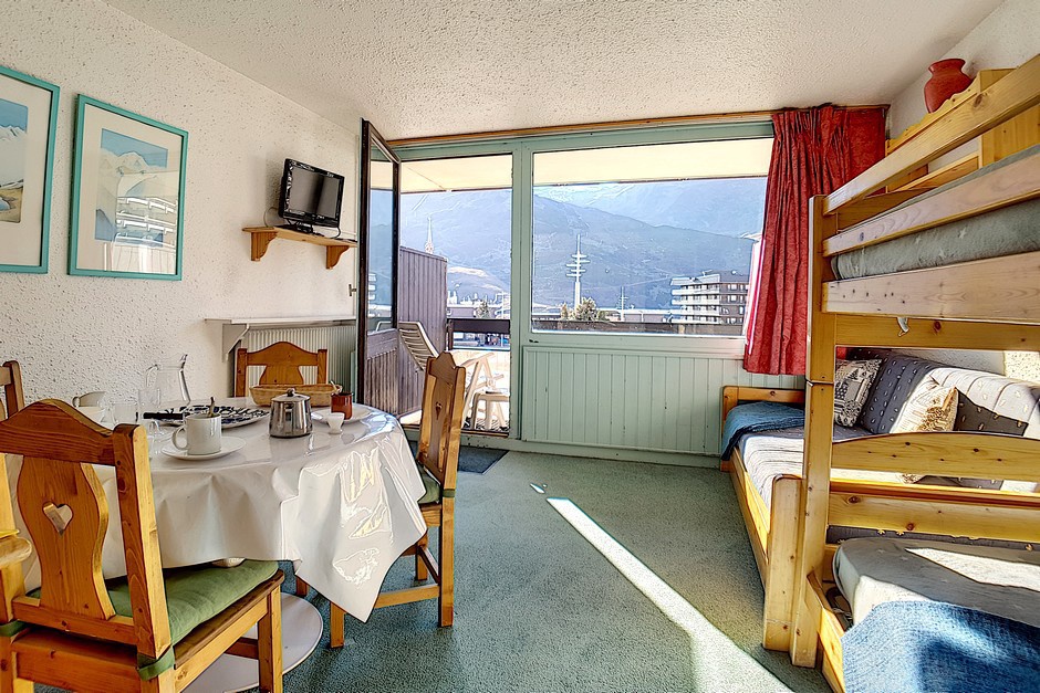 Séjour : 1 lit simple et 2 lits simples superposés. Equipé d'une télévision.