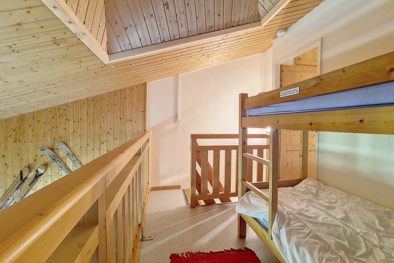 Appartement de 33,50 m² avec balcon Est, composé de 3 pièces dont 1 chambre et 1 coin nuit en mezzanine. Situé au 4ème étage avec ascenceur, l'appartement peut accueillir 4 personnes.