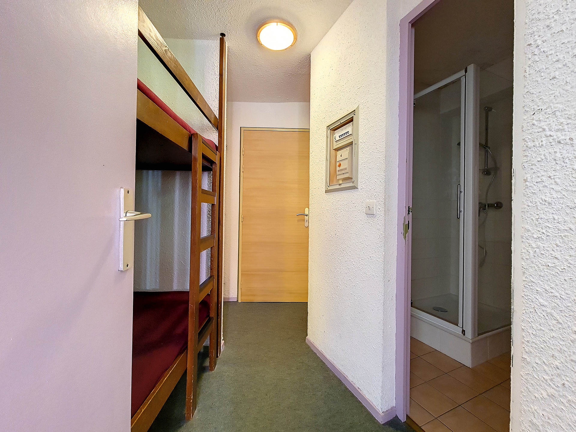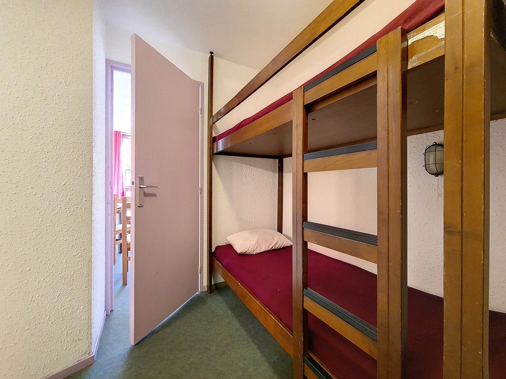 Coin montagne (Entrée séparée du séjour par une porte) : 2 lits 1 personne superposés.