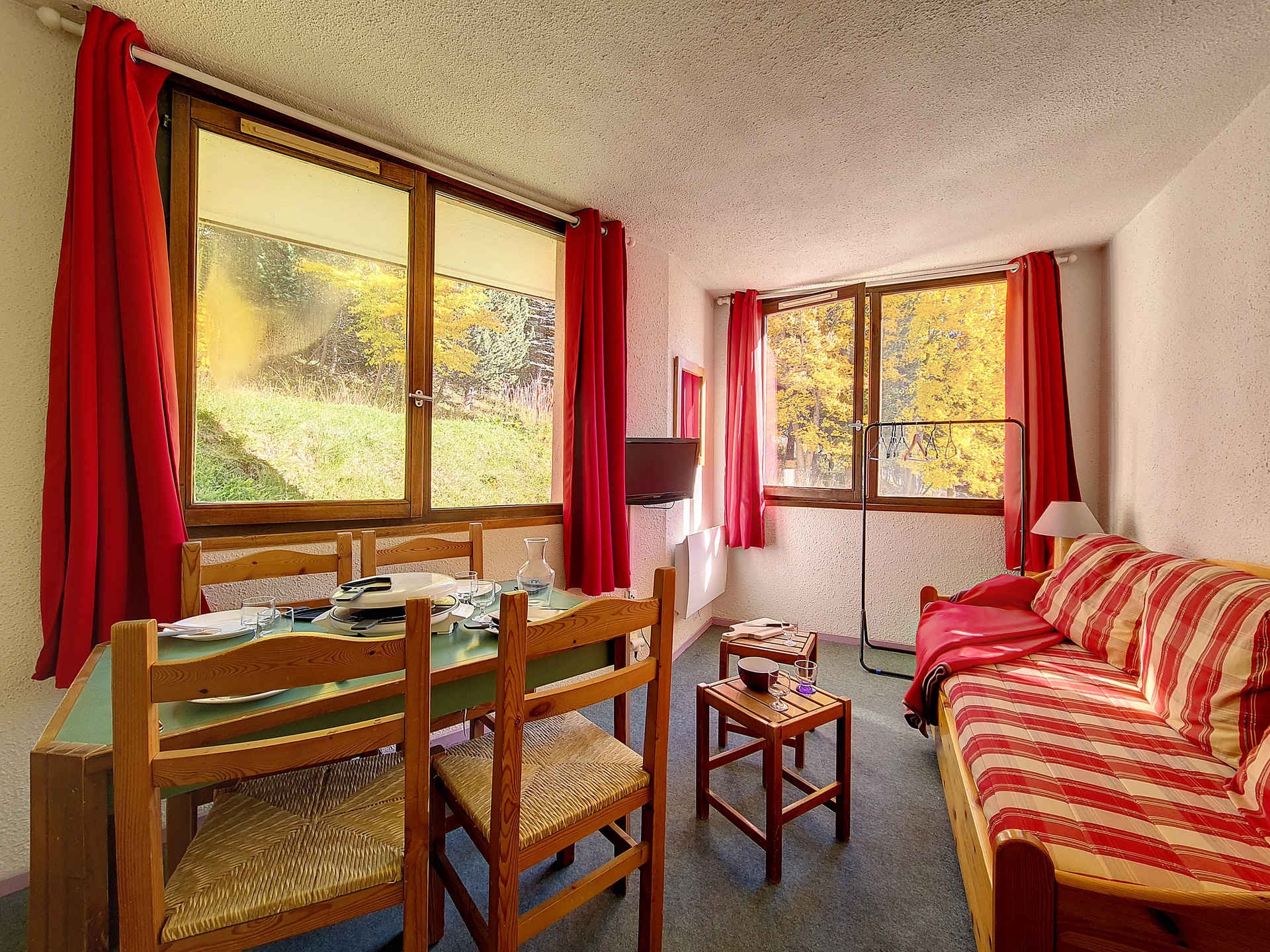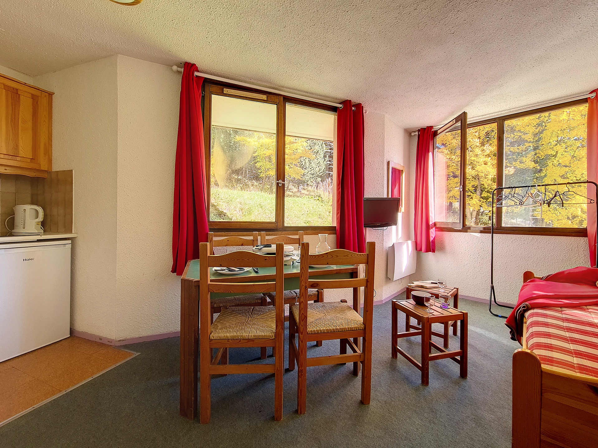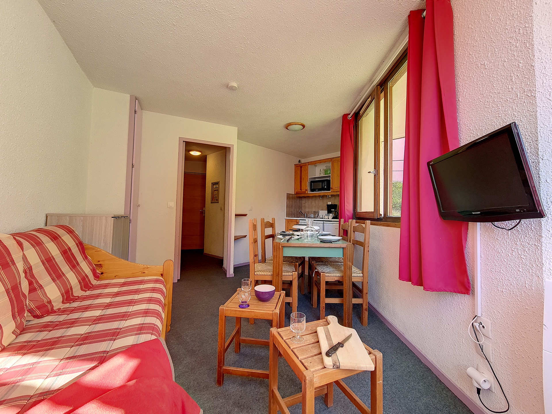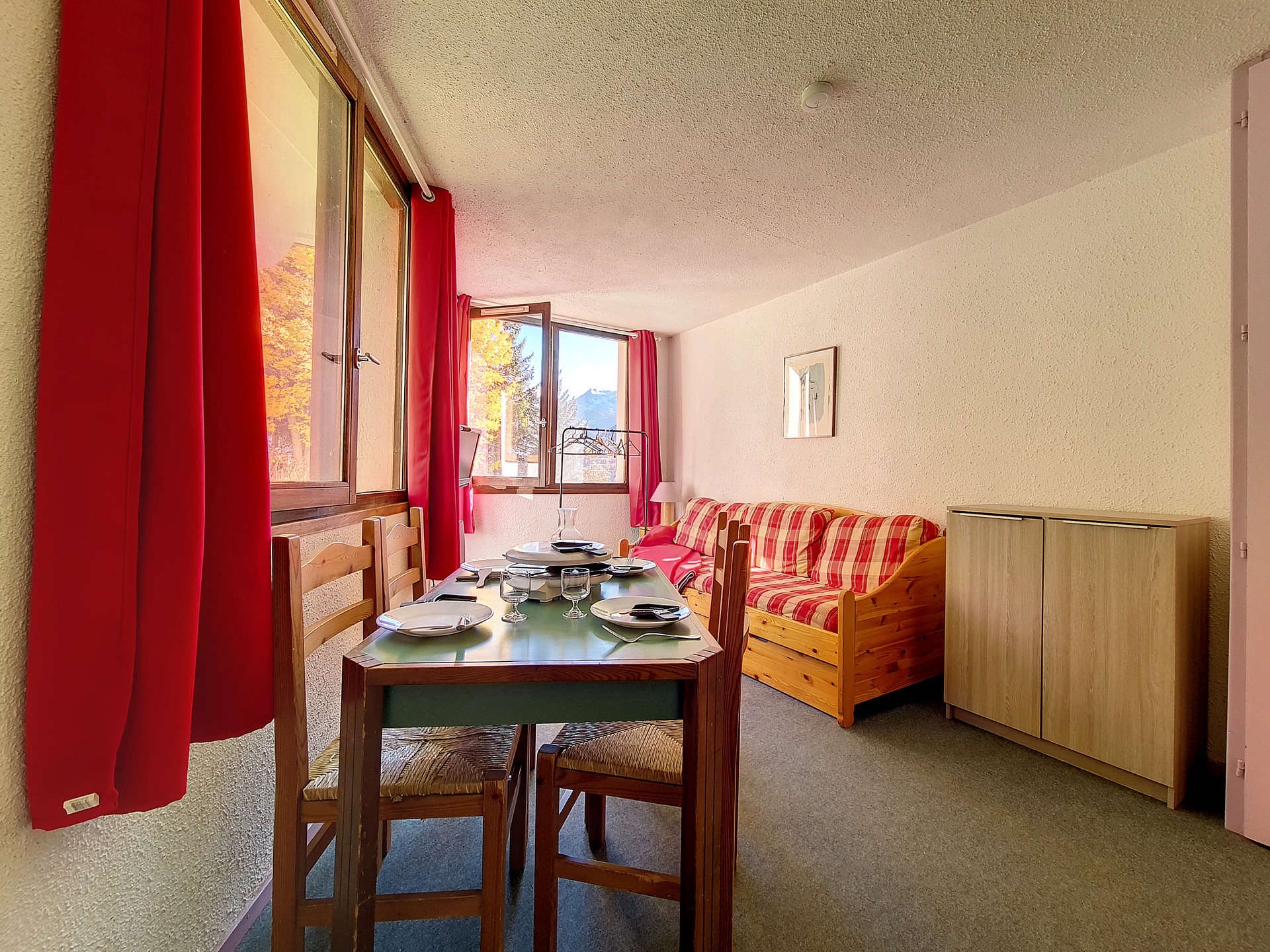 Séjour : 1 banquette-lit 1 personne et 1 lit gigogne 1 personne relevable. Equipé d'une télévision.