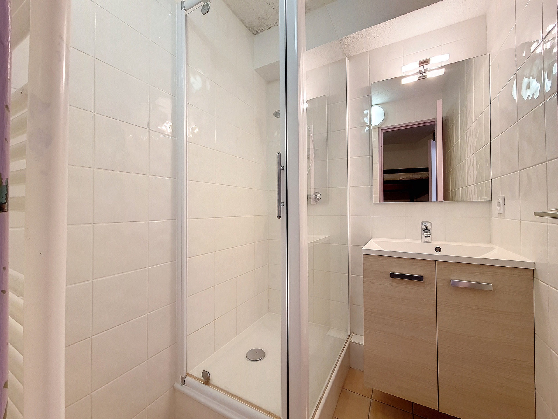 Salle d'eau avec douche.