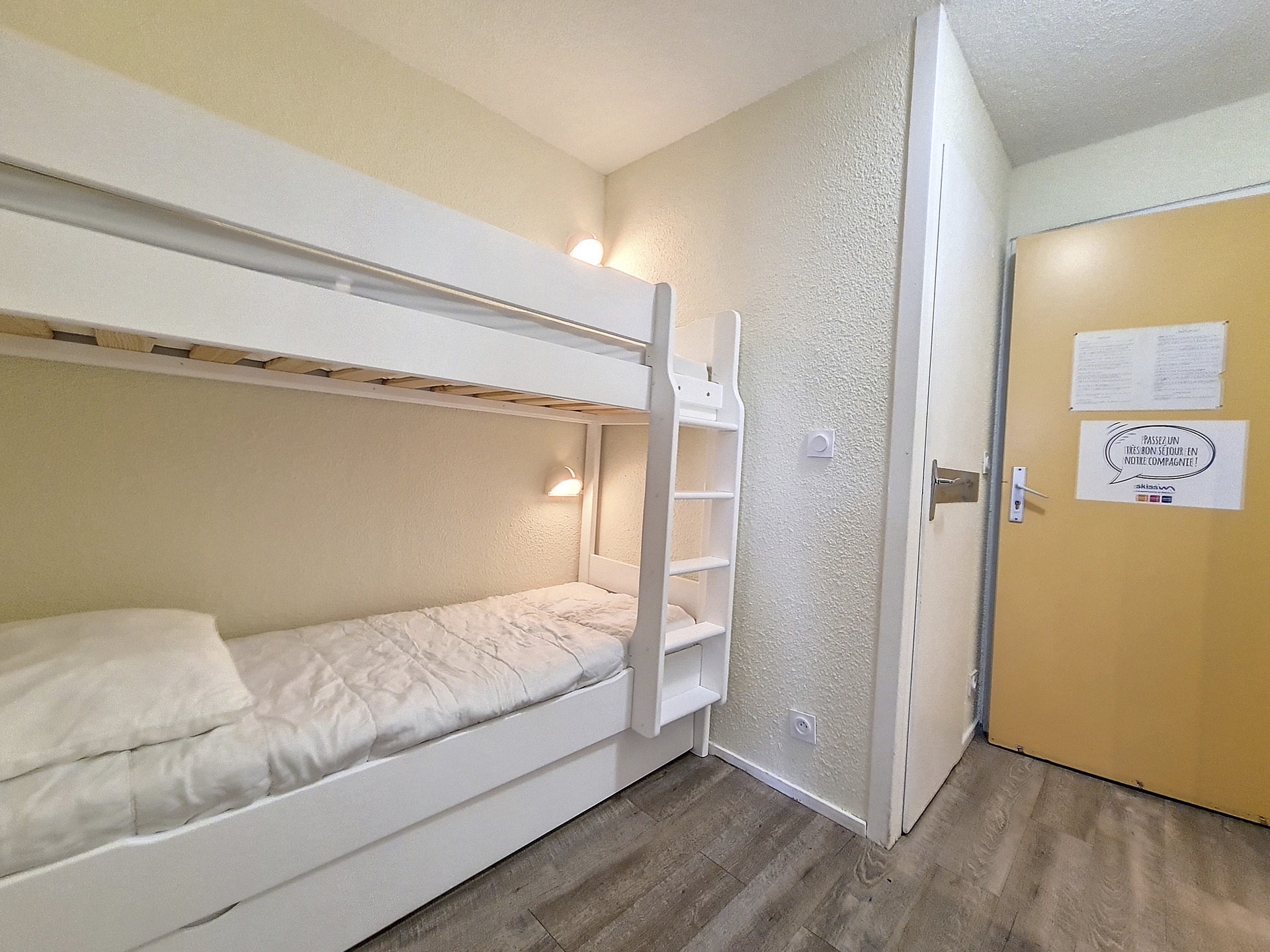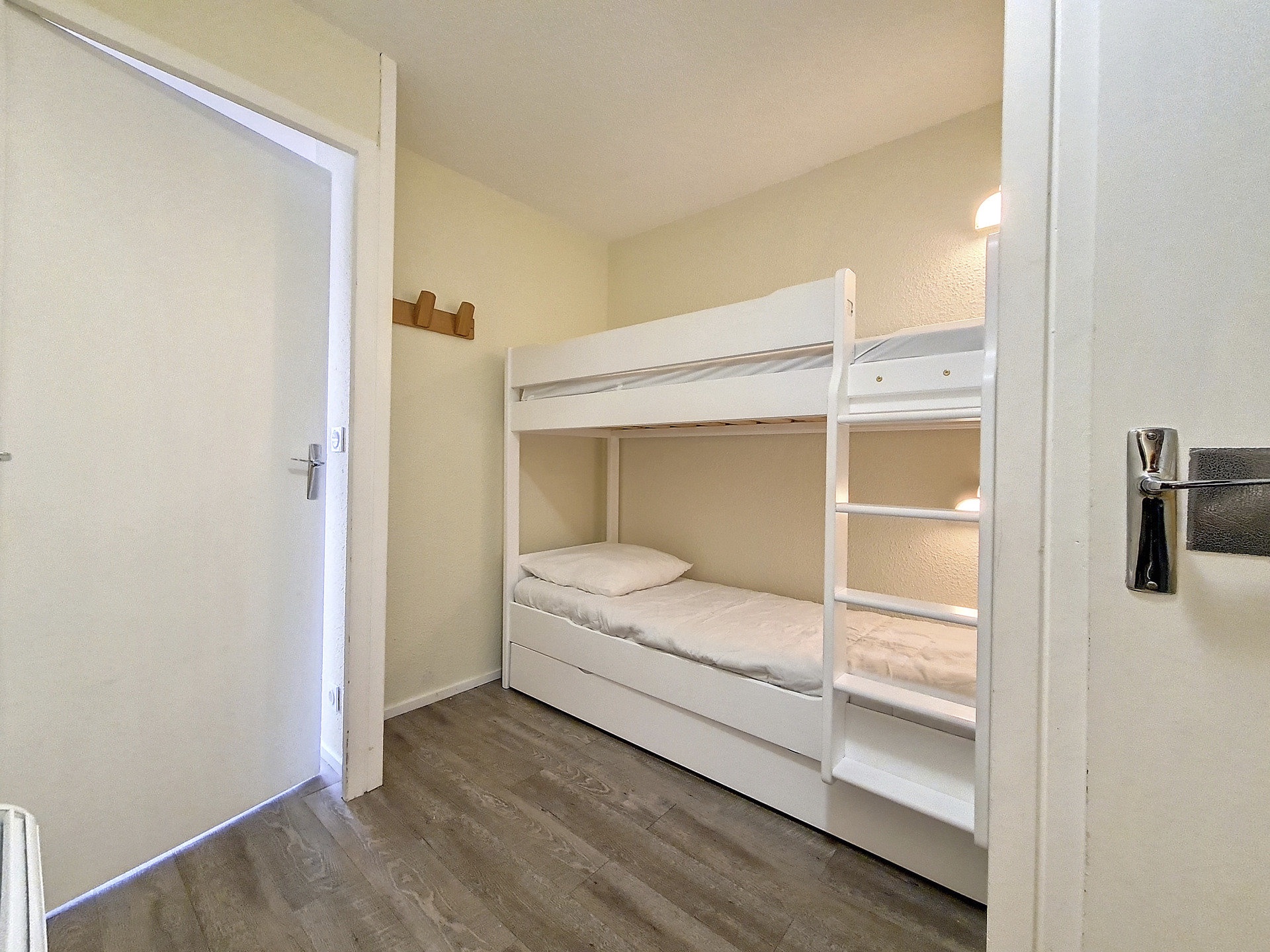 Coin montagne (dans l'entrée séparée du séjour par une porte) : 2 lits 1 personne superposés.