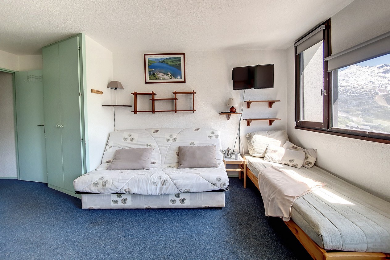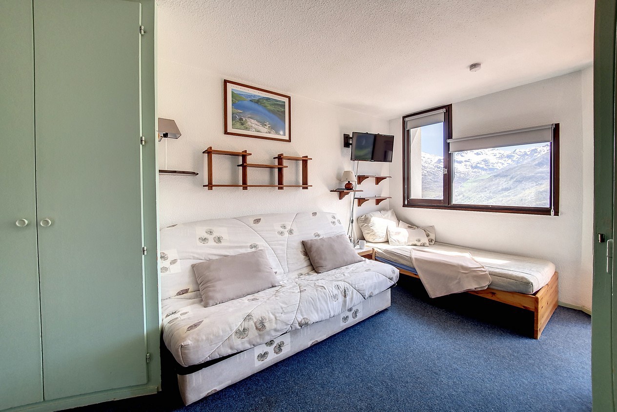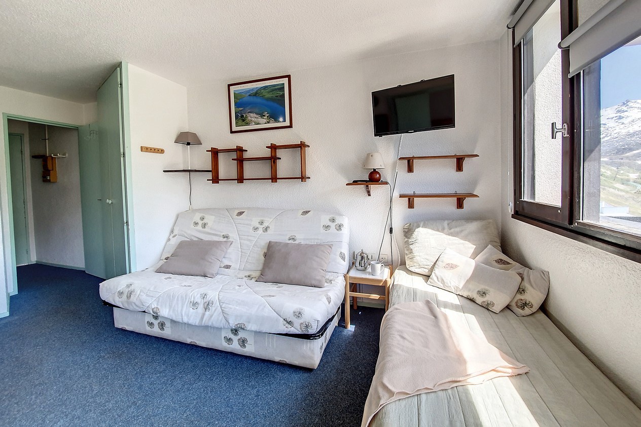 Séjour : 1 canapé-lit 2 personnes (130 cm). Equipé d'une télévision.