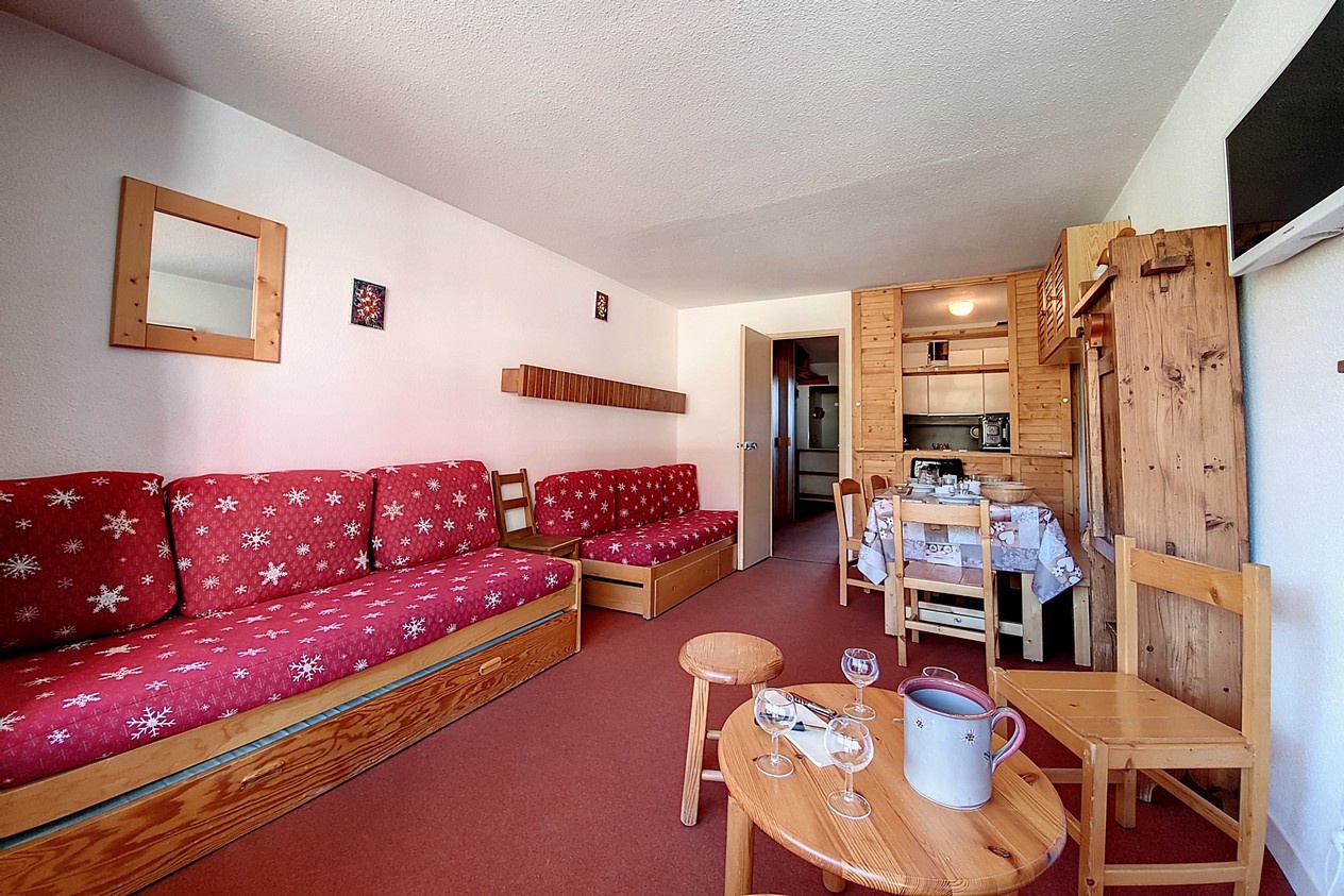 Séjour : 1 banquette lit une personne et 1 lit gigogne relevable. Télevision écran plat.