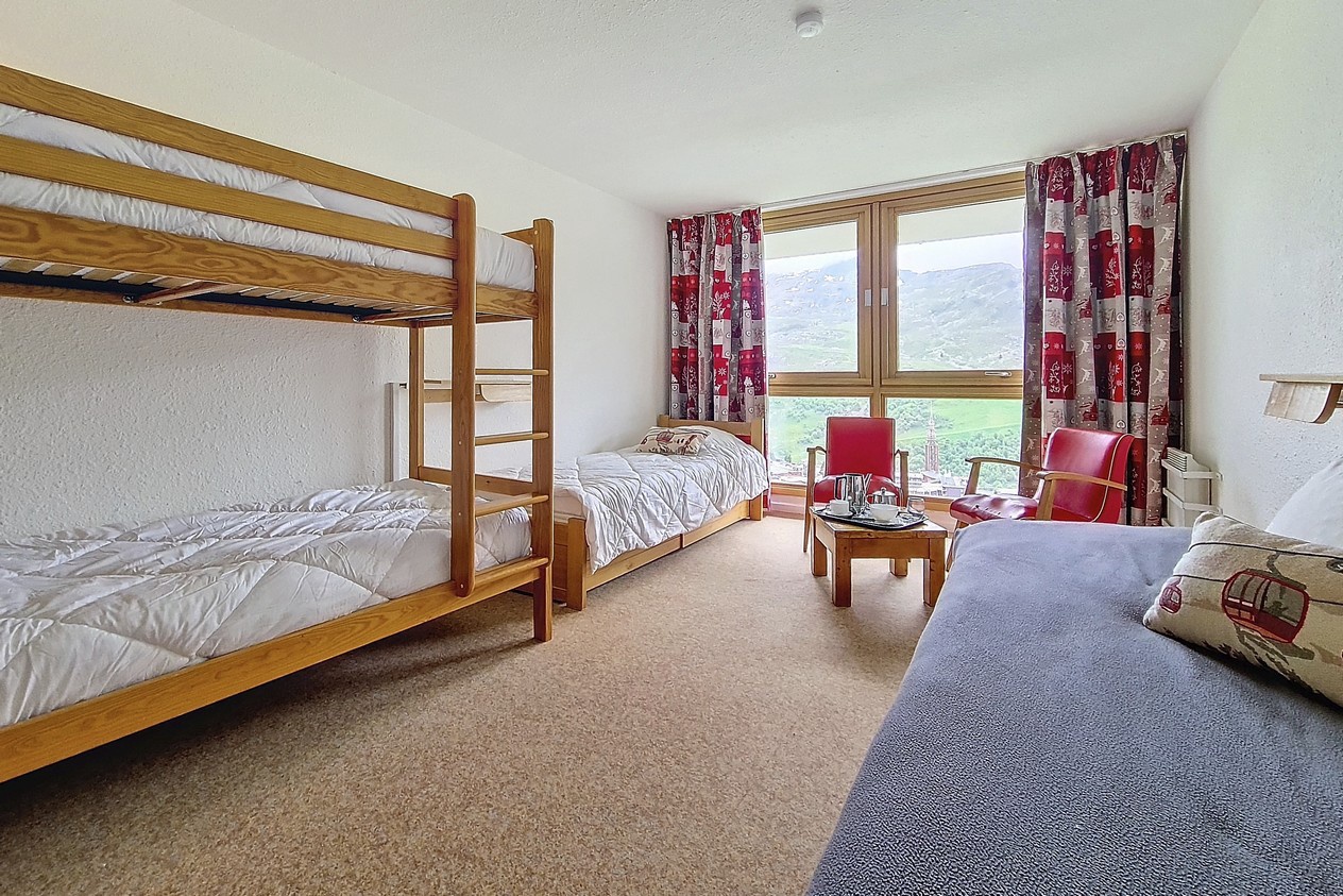 Chambre 2 : 2 lits 1personne.+ 1 lit superposés 1 personne.Le couchage en hauteur ne convient pas à des enfants de moins de 6 ans.