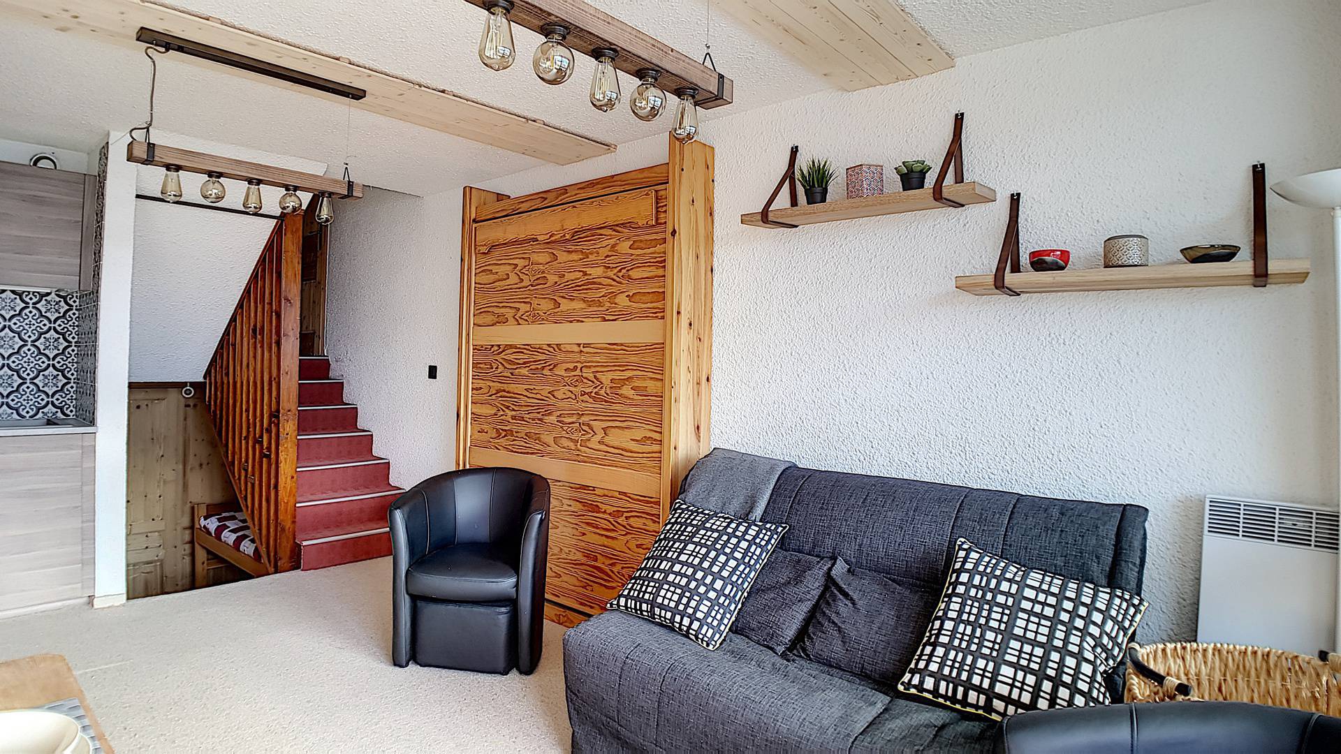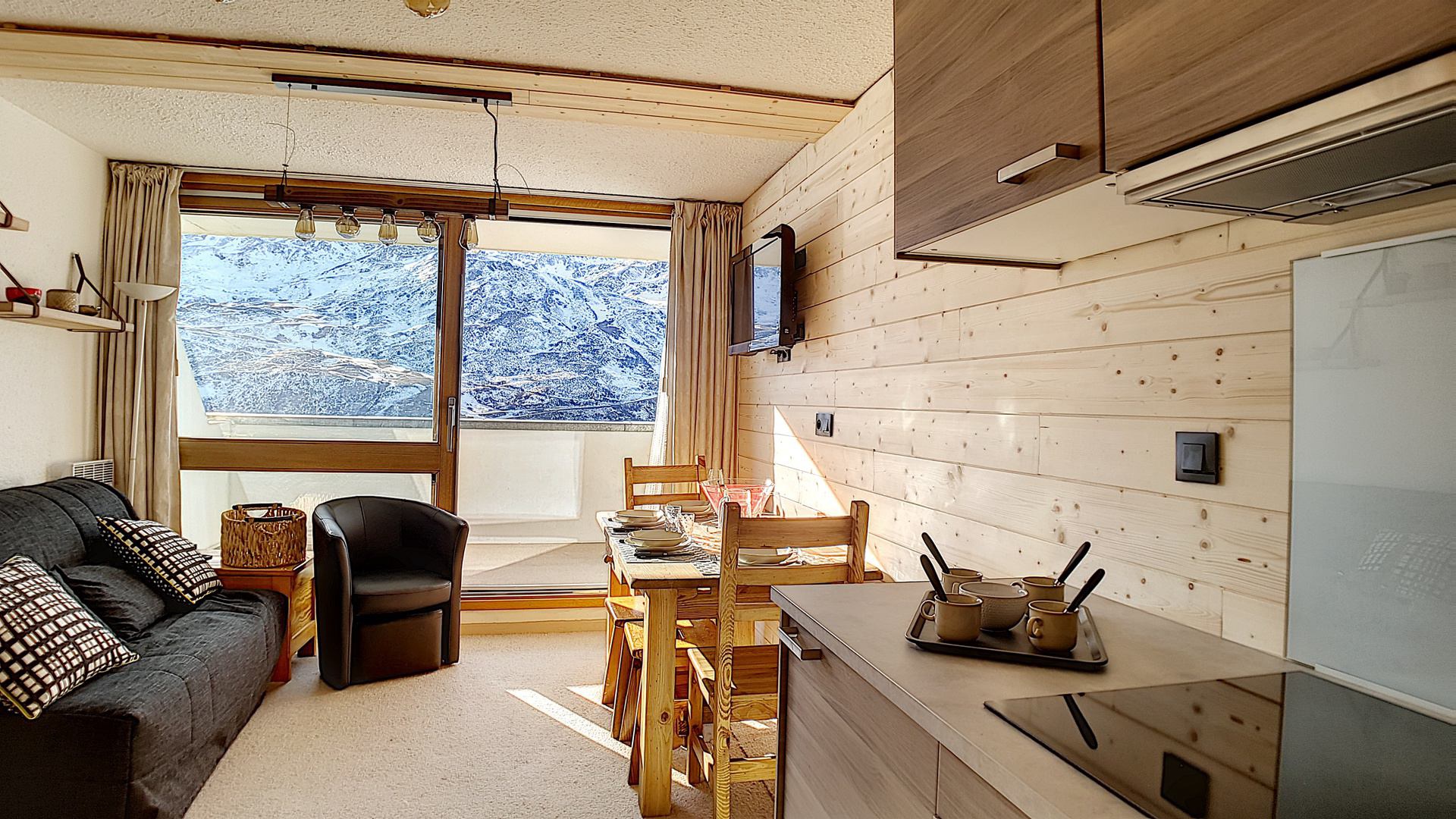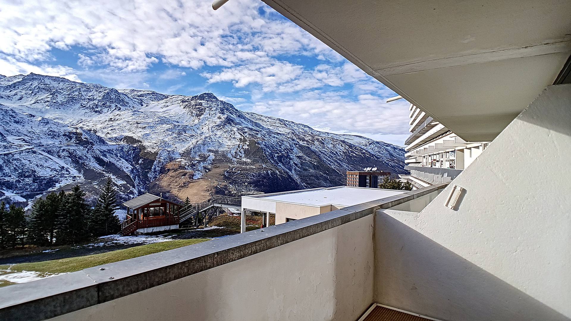 Studio en duplex de 24 m², pour 4 personnes avec un balcon orienté Sud situé au rez-de-chaussé (niveau parking) avec ascenseur. Vue et ensoleillement exceptionnels.