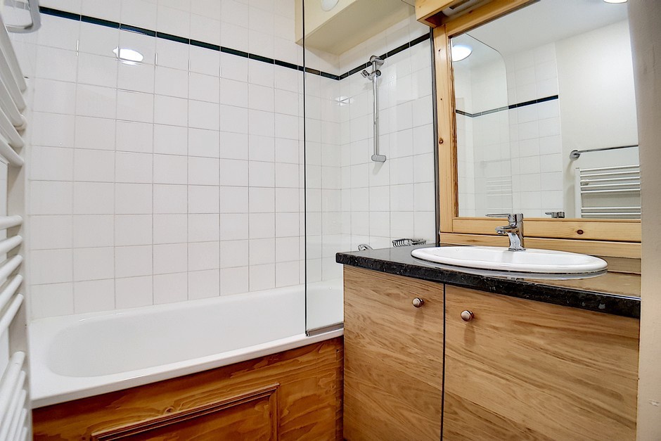Salle de bains avec baignoire.