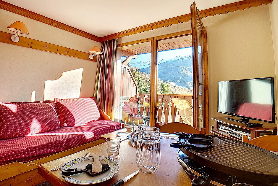 Séjour : 1 banquette-lit 1 personne et 1 lit gigogne 1 personne relevable. Equipé d'une télévision et d'un lecteur DVD.