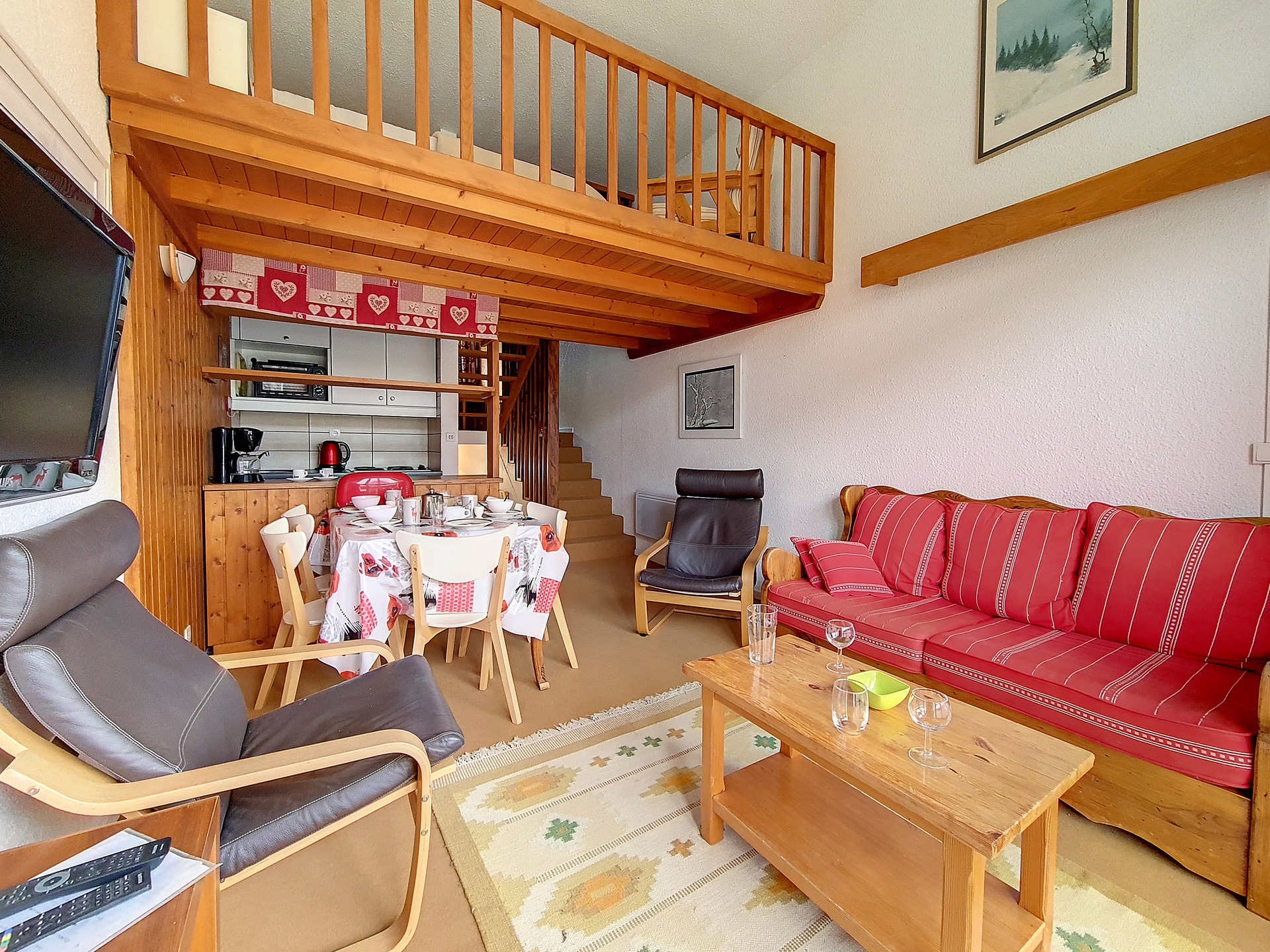Mezzanine ouverte au dessus du séjour (1,50m sous plafond ) : 1 lit double