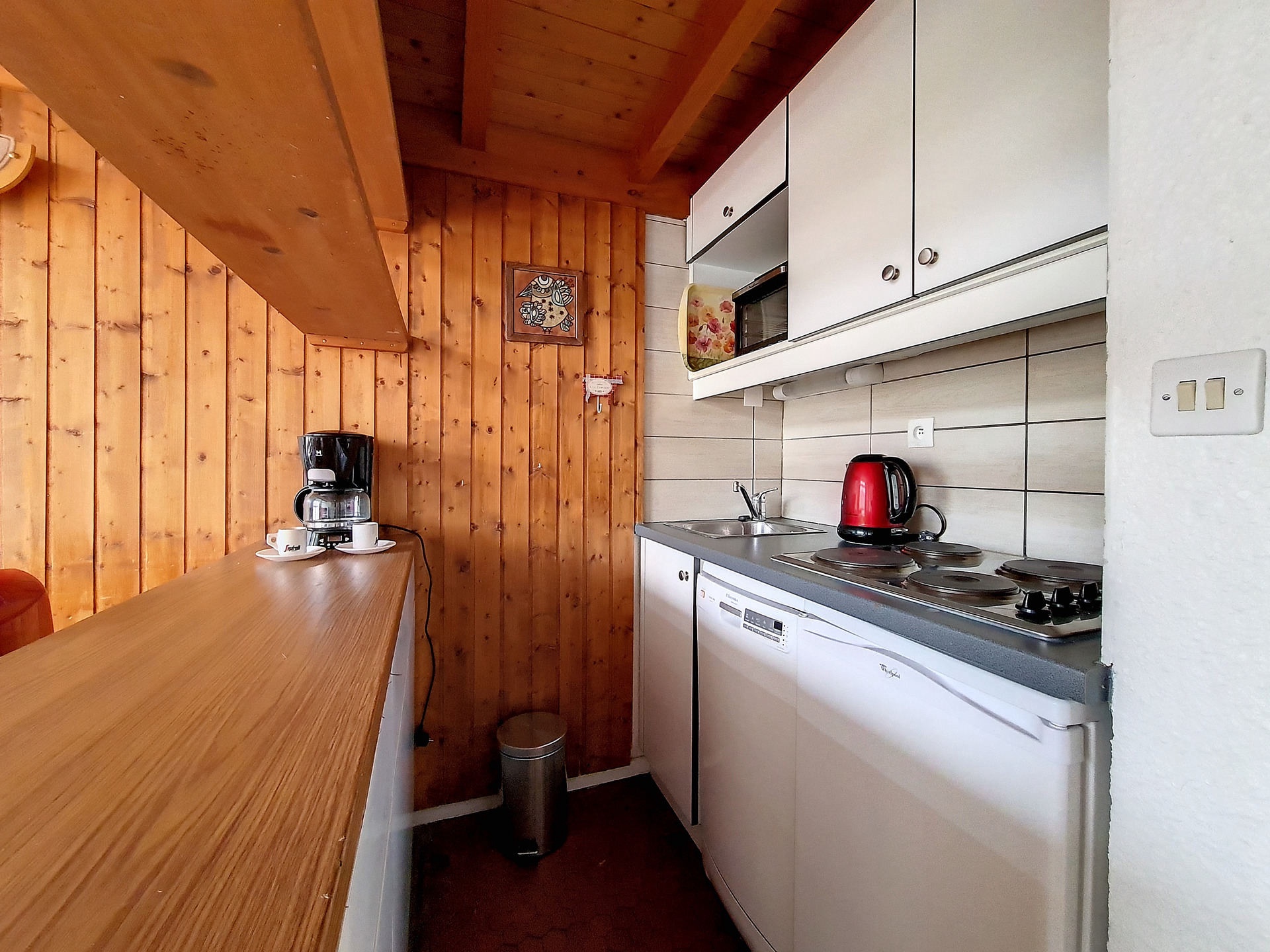 Cuisine incorporée 4 plaques, Mini four, réfrigérateur et lave-vaisselle, grille-pain, bouilloire et cafetière