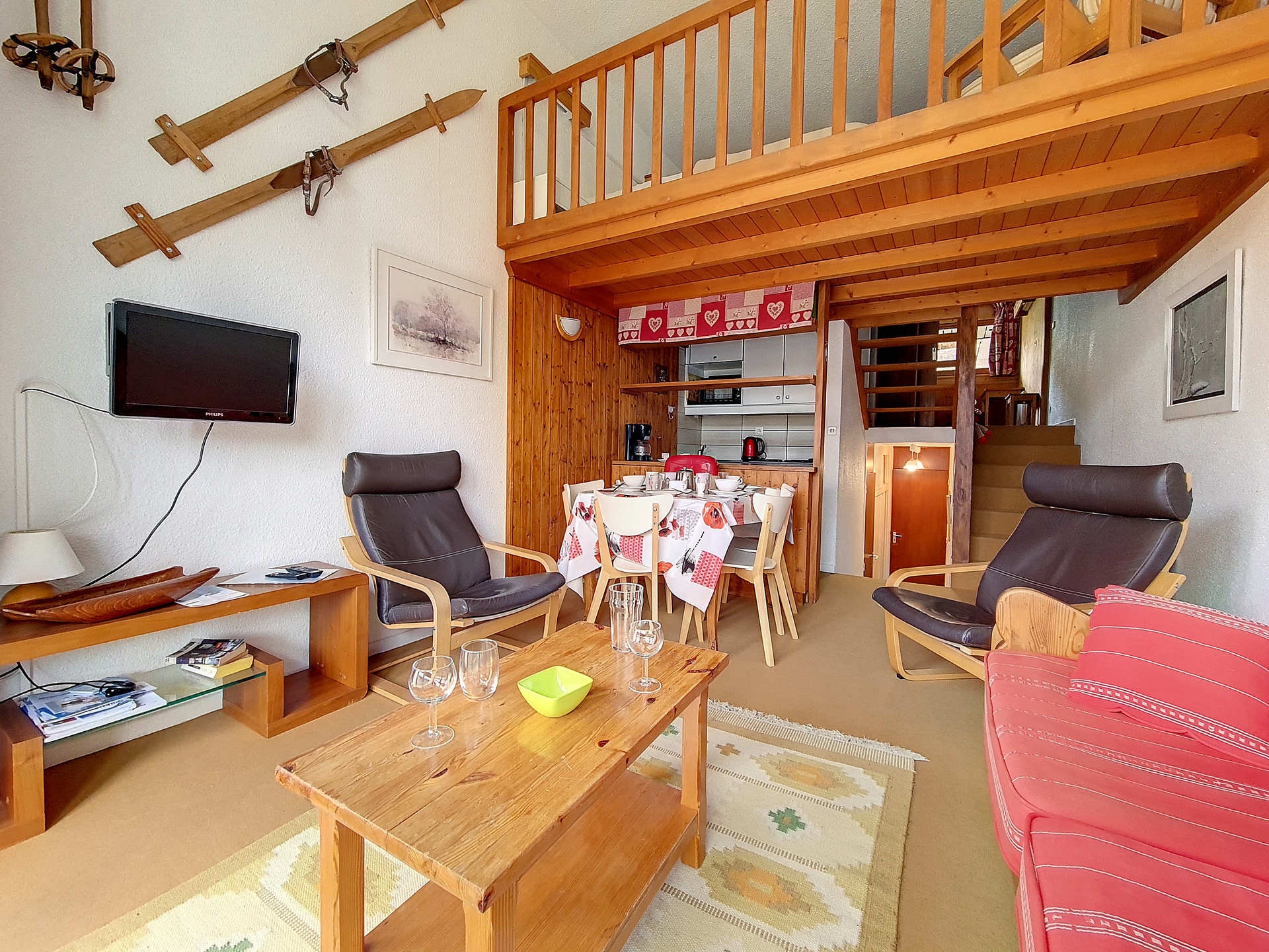 Appartement de 2 Pièces en duplex de 37m² avec mezzanine de 8 m² (hauteur inférieure à 1.80m) pour 5 personnes avec un balcon orienté Sud/Ouest situé au 7ème étage avec ascenseur.