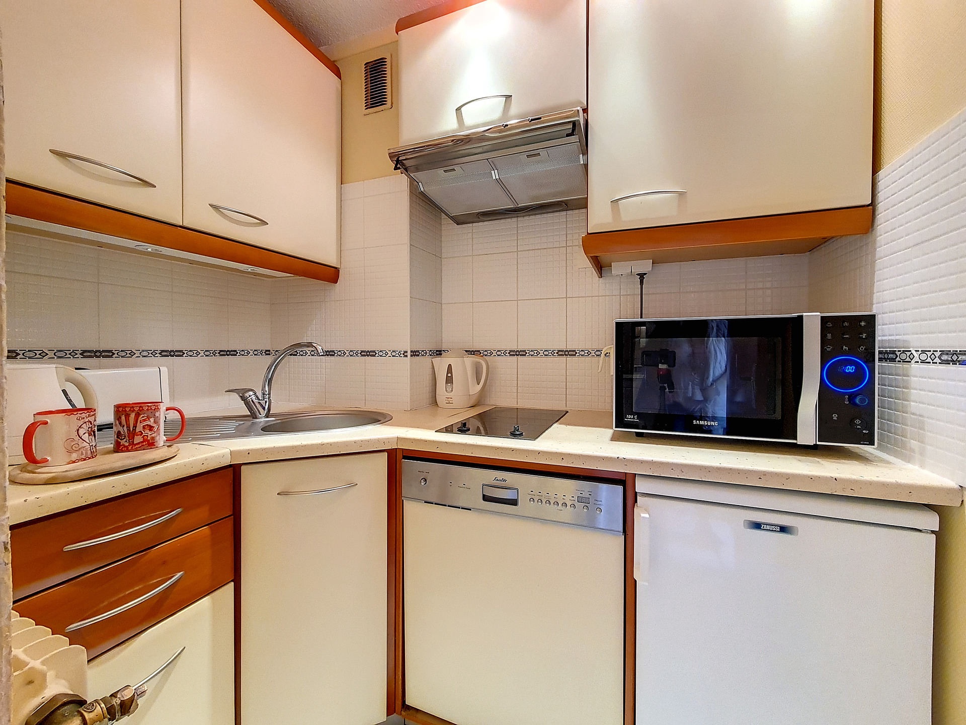 Cuisine indépendante 2 plaques, réfrigérateur, micro-ondes, mini Lave vaisselle, grille-pain, bouilloire et cafetière.