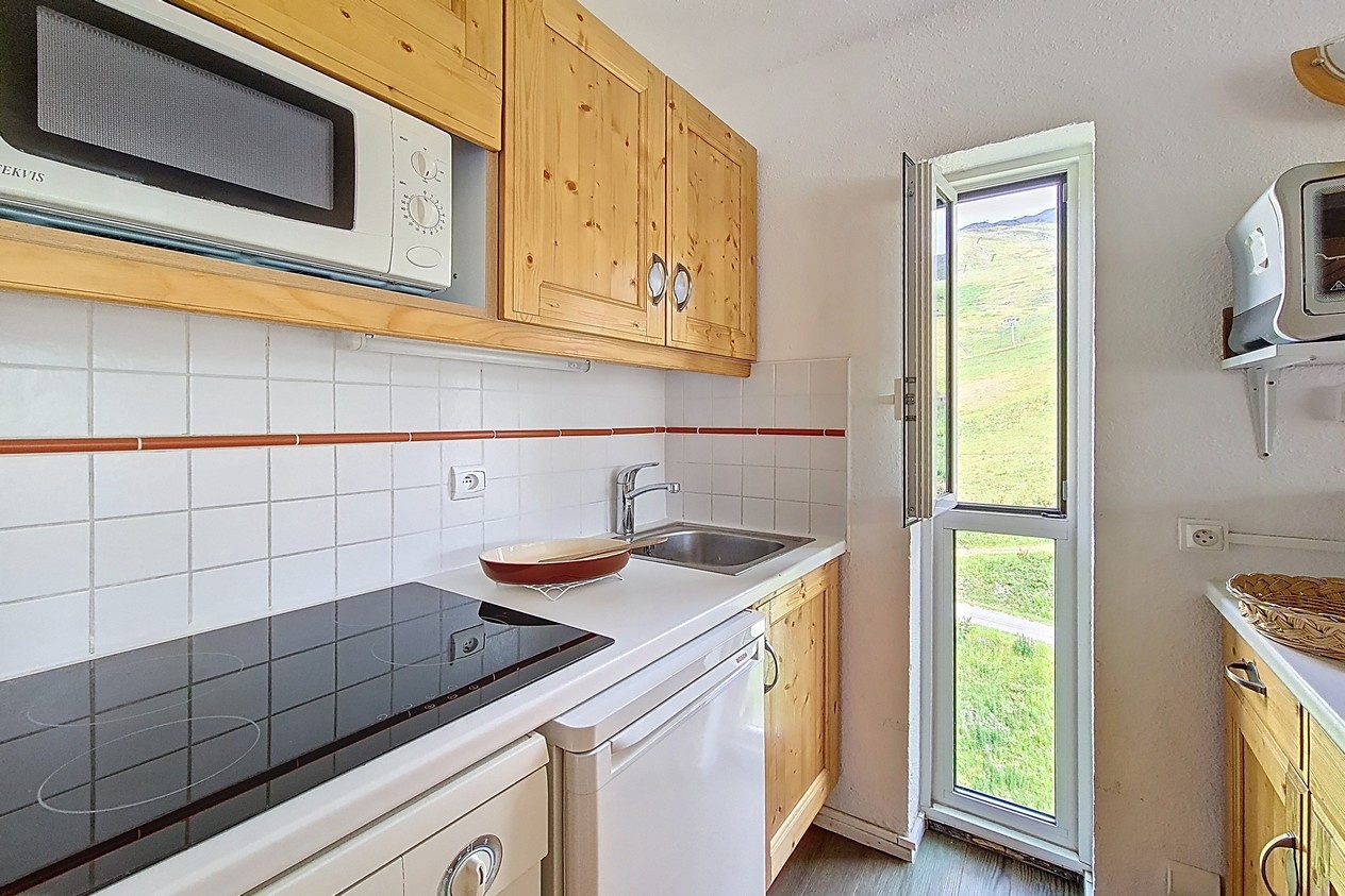 Appartement de 2 Pièces entièrement rénové de 38 m² pour 6 personnes. Il a un balcon sud côté séjour et un balcon nord côté chambre.