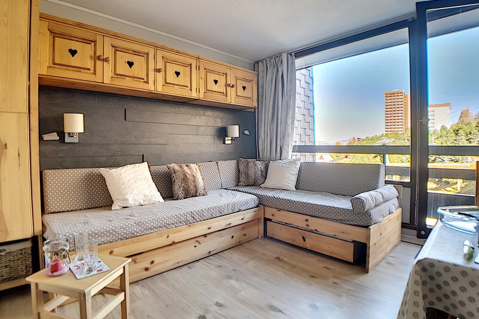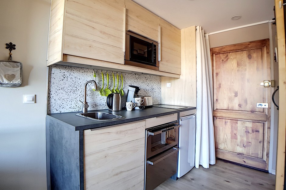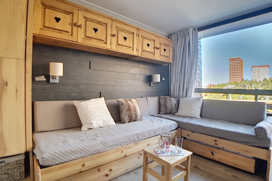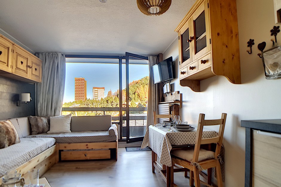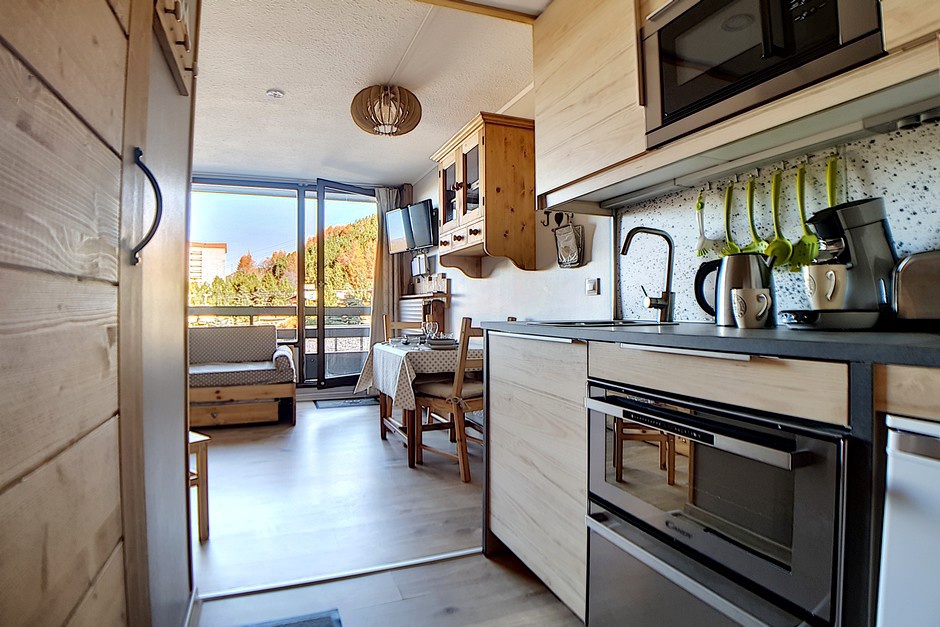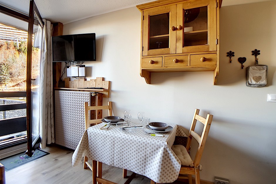 Studio entièrement rénové de 17m² pour 2 personnes avec petit balcon orienté nord. Situé au 1er étage de la résidence Chavière, vous donnant un accès direct aux pistes et à la galerie de la Croisette.