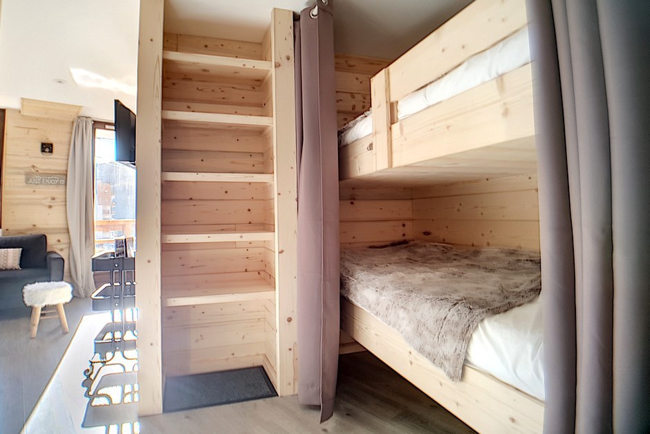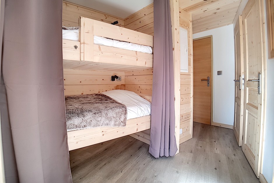 Coin montagne (séparé du séjour par un rideau) : 2 lits superposés 1 personne.