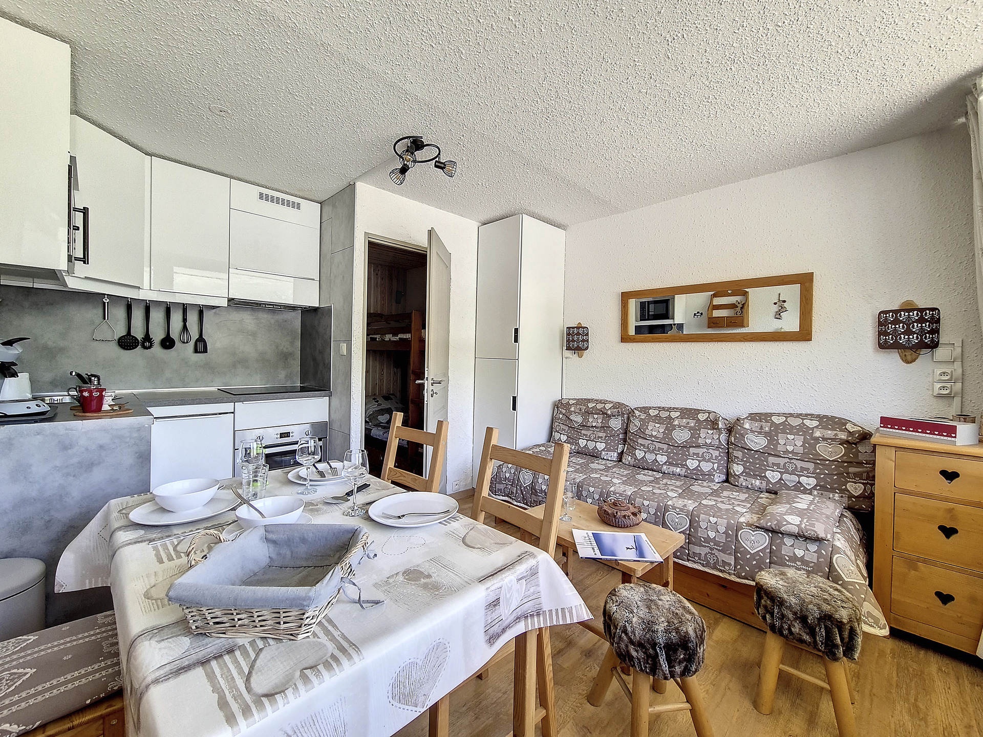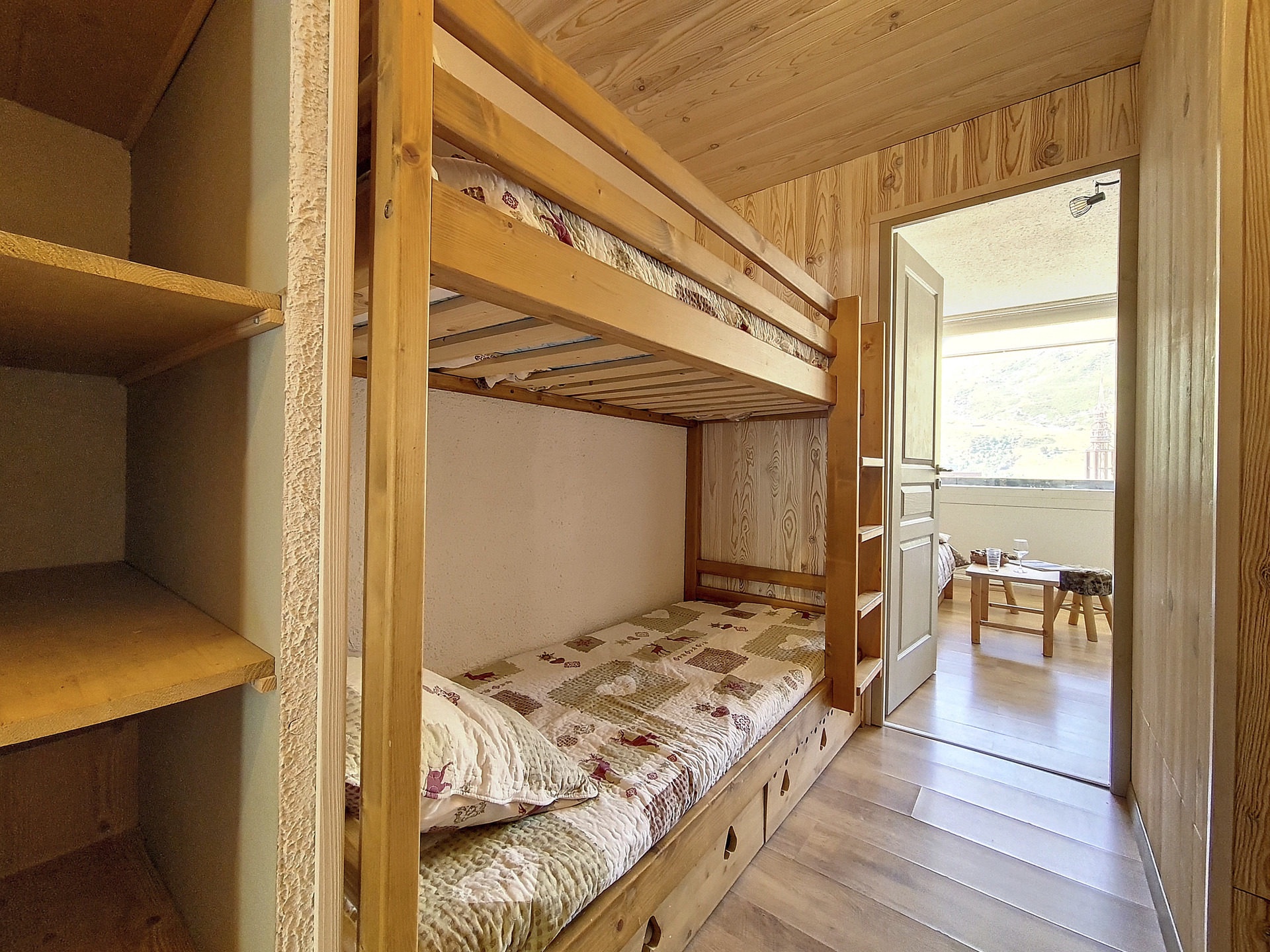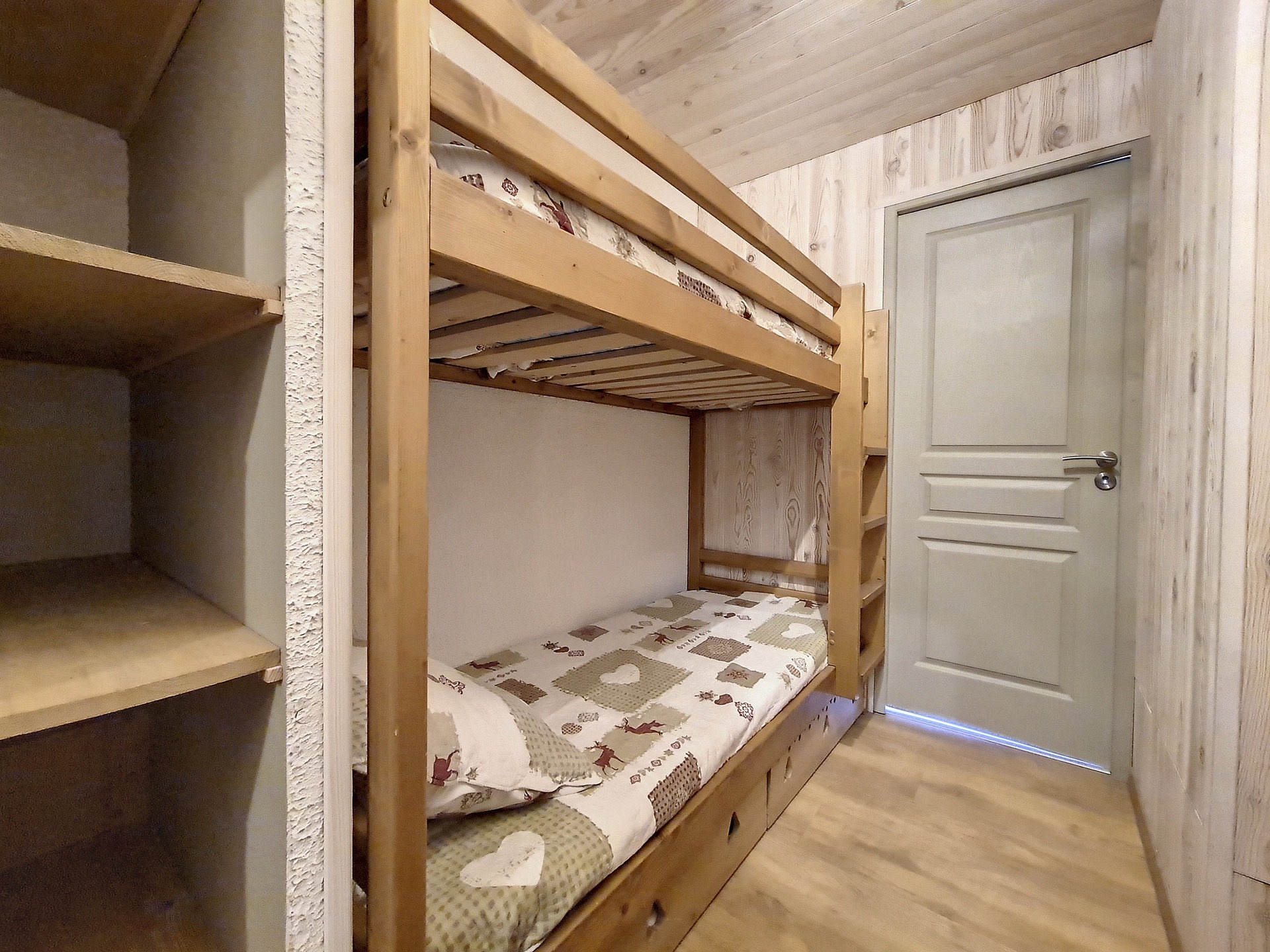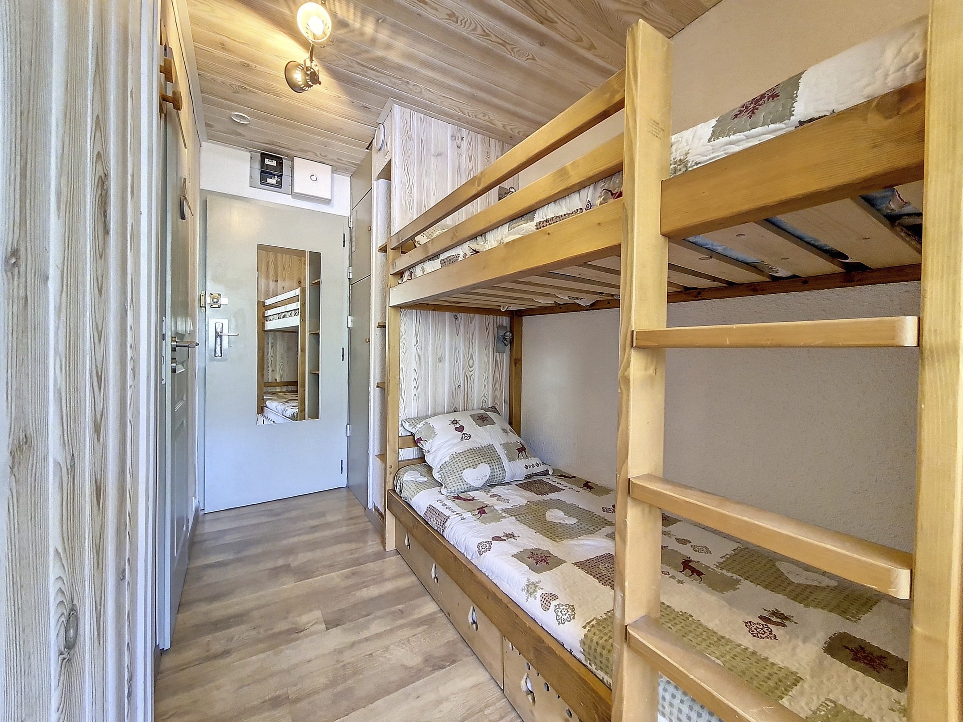 Entrée séparée du séjour par une porte: 2 lits superposés 1 personne.