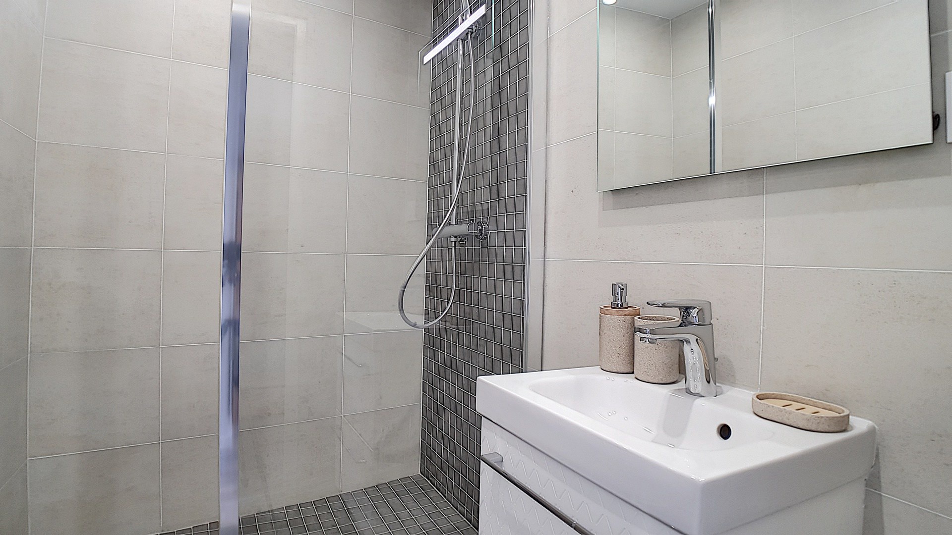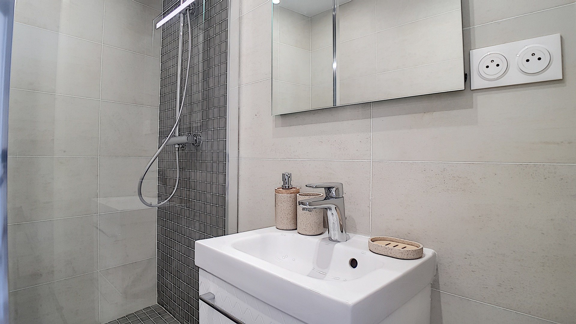 Salle d'eau avec douche.